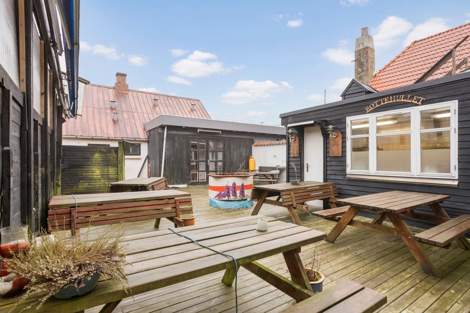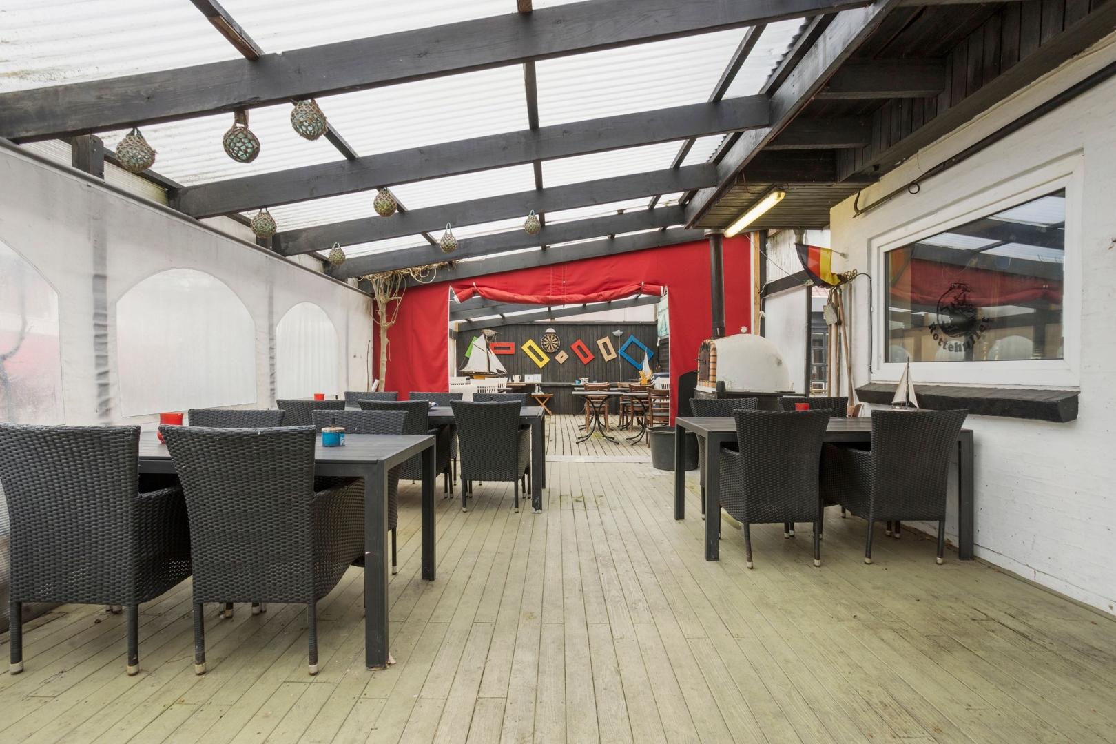 ·Krostue: En nostalgisk krostue med bar og restaurationslokale, der har udgang til overdækkede udearealer. Der er også et øllager, to toiletter, baglokale og andre funktionelle områder.
