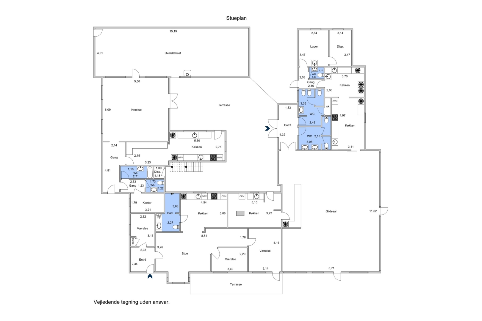 Krostue, selskabslokaler og to lejligheder