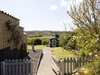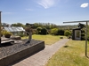 Haven er enkelt anlagt med græsplæne, hæk og let beplantning.