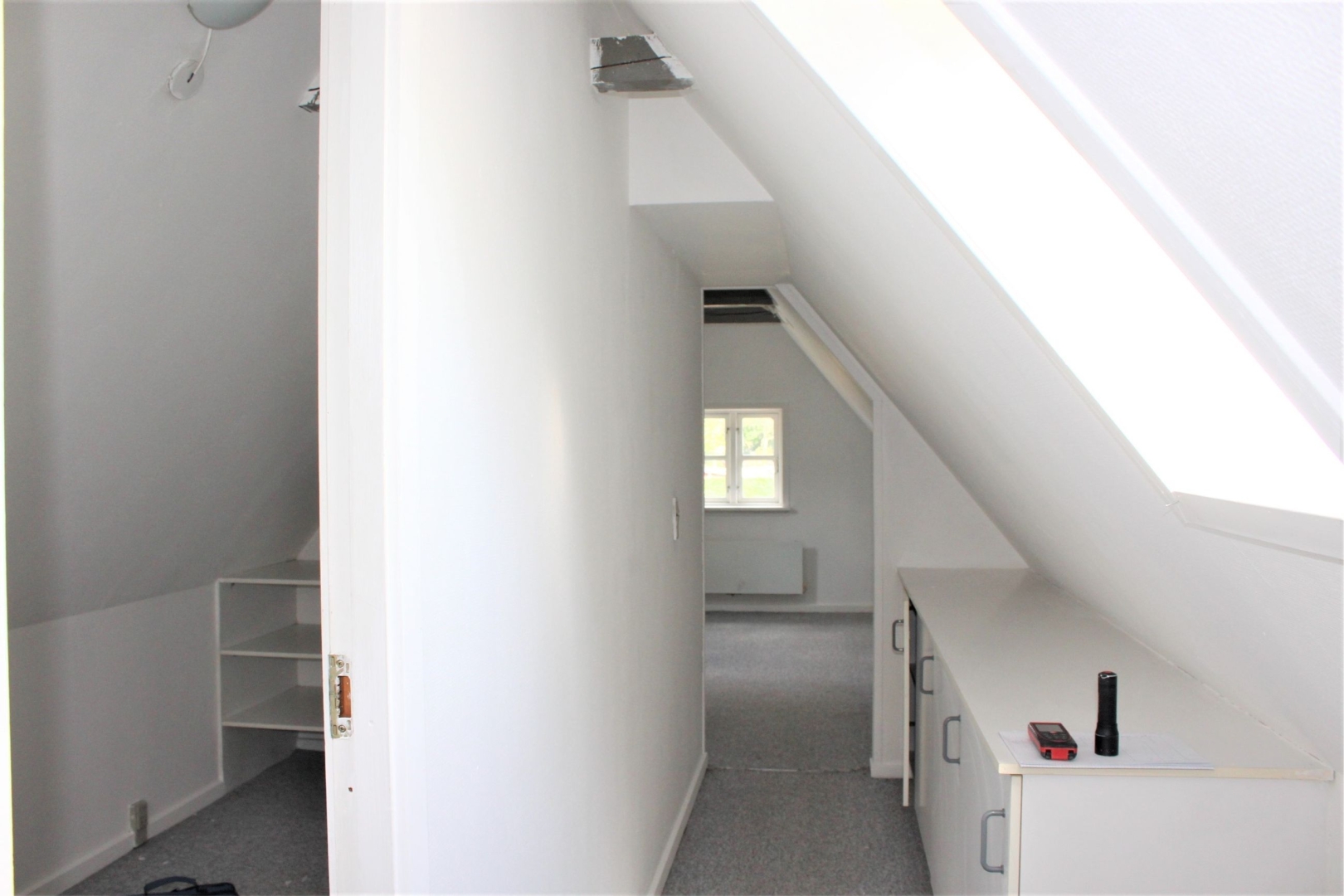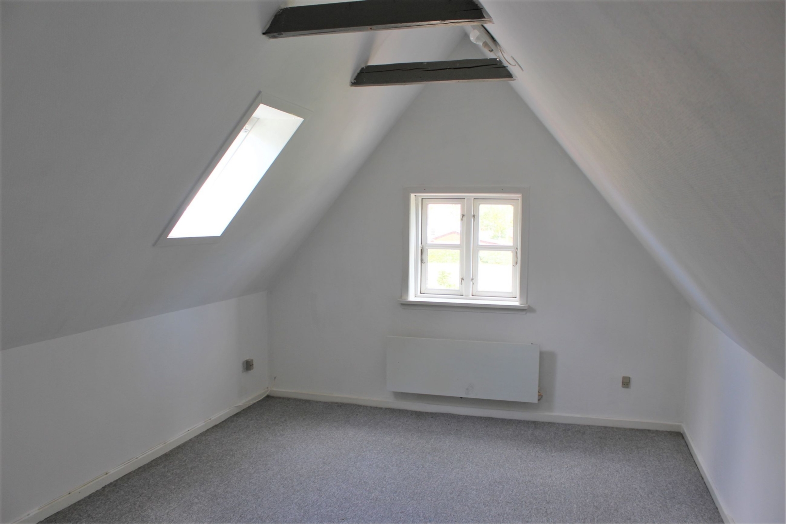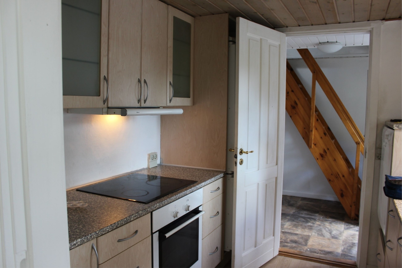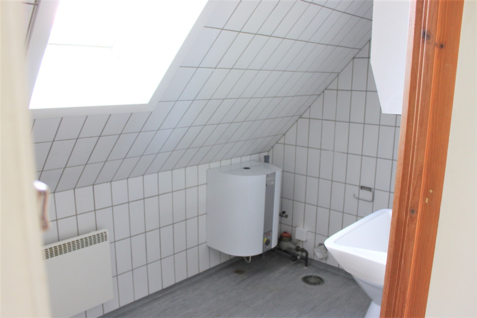 1 sals lejlighed 37 m²: Entré med trappe til 1. sal - Badeværelse med bruseniche - Værelse - Køkken kombineret med stue hvor der er synlige bjælker samt kvist.