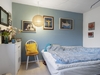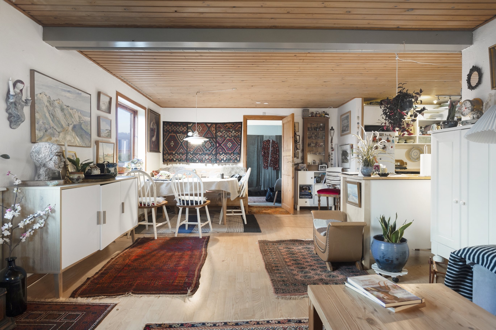 Fra trappeopgang til 1. sal er en der fin lejlighed indeholdende: gang, kombineret opholds- og spisestue med udgang til sydvendt altan, spisekøkken, stort soveværelse, fint værelse, badeværelse med bruseniche m.v.