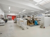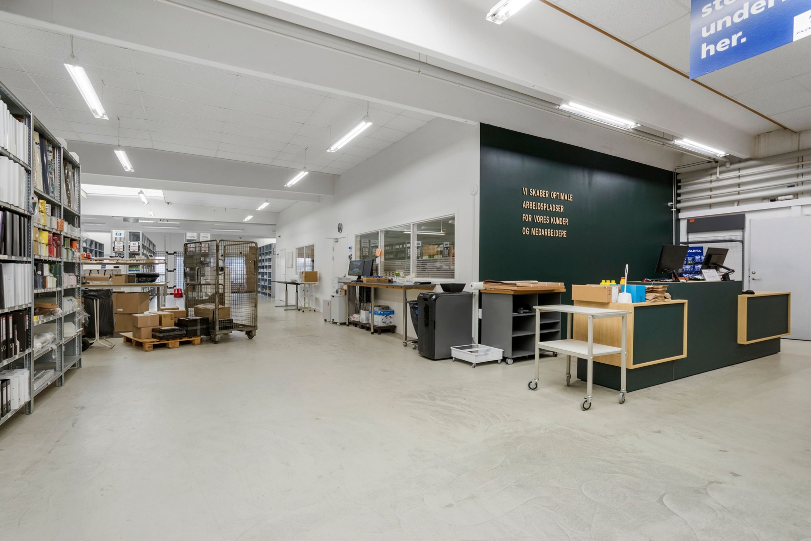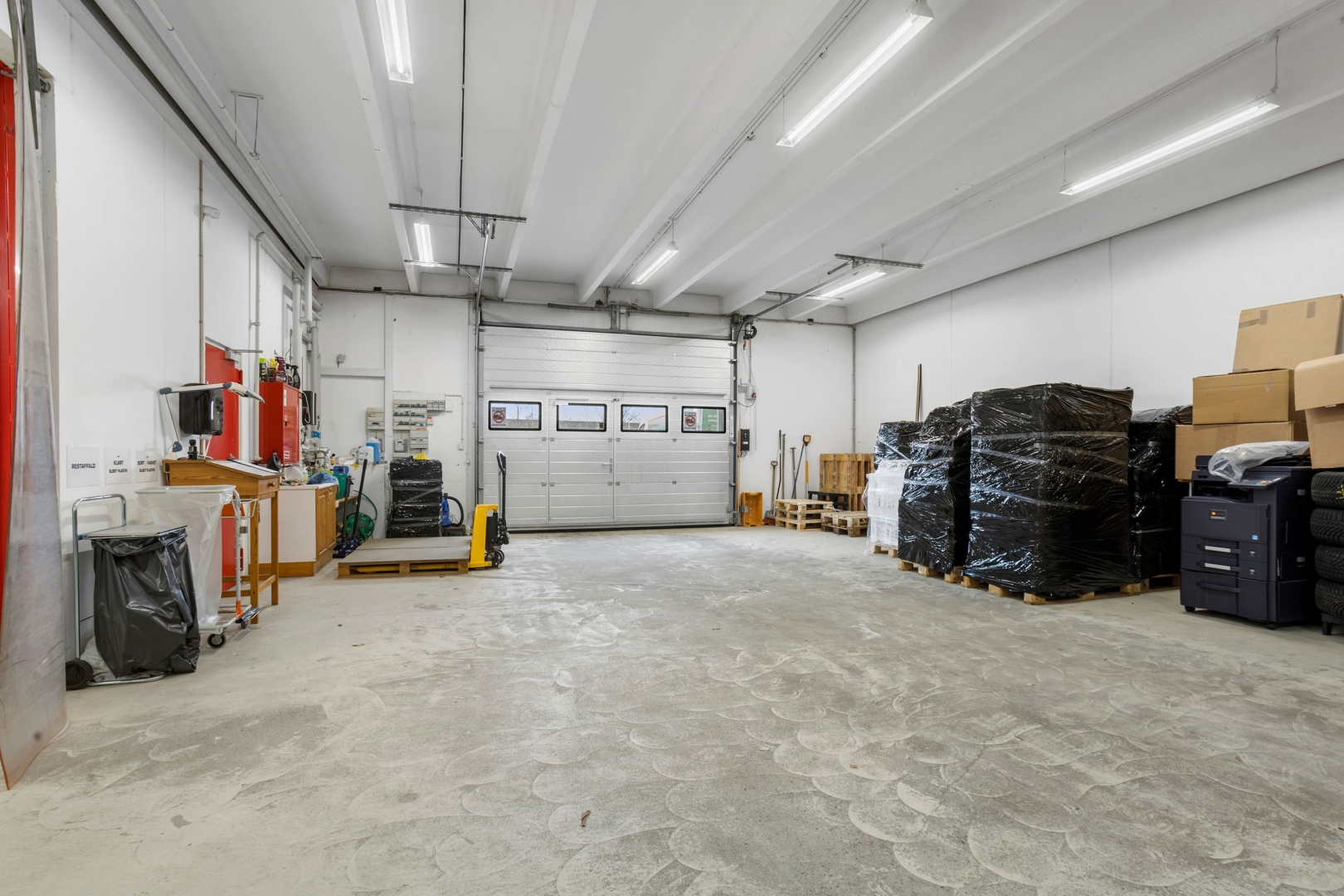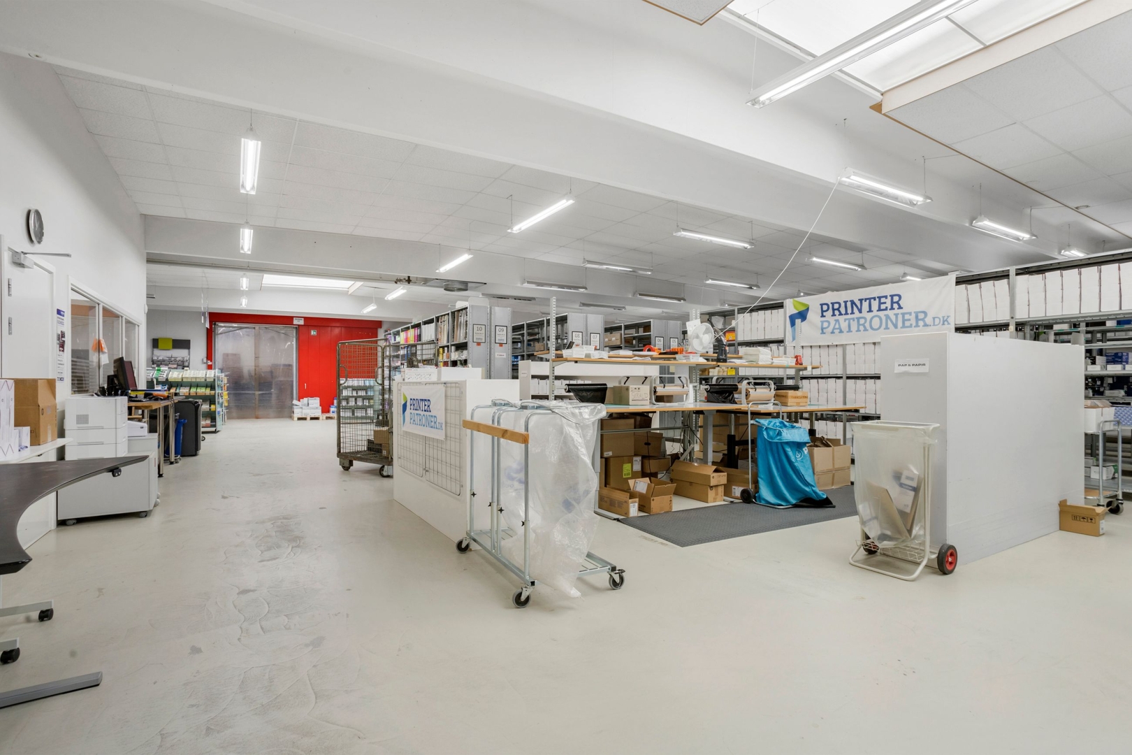 Ejendommens lager- og produktionsområder er lige så imponerende. Via en bred aluport får man adgang til et koldlager, og videre til et stort, regulært butik/lager-/produktionslokale med fem store udstillingsvinduer mod syd, der sikrer masser af naturligt lys. Gulvene er i beton og delvist belagt med klinker og trægulve, hvilket giver en holdbar og professionel finish.