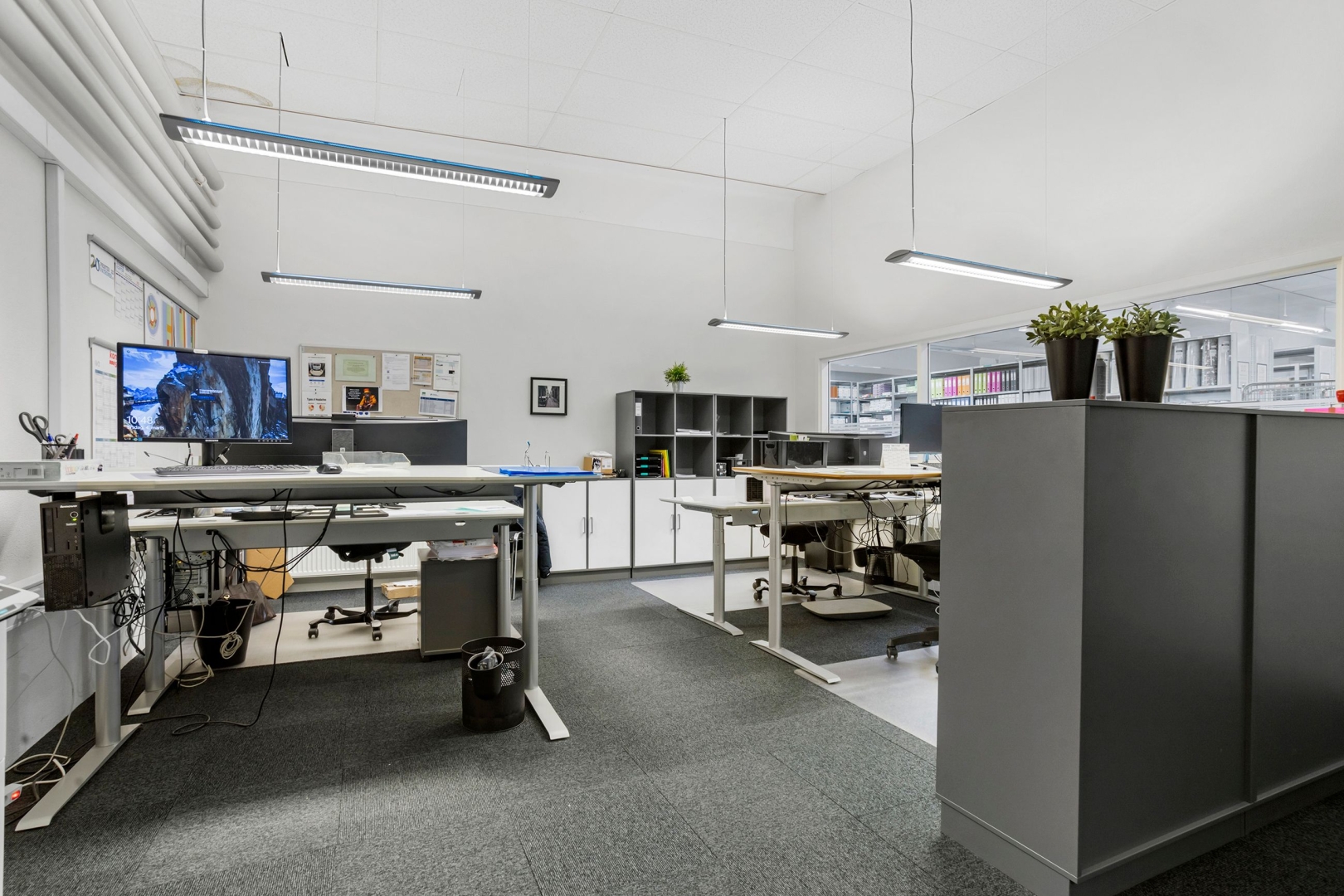 Loftets akustikplader og træbetonlofter understøtter et godt arbejdsmiljø, sammen med et godt lysindfald.