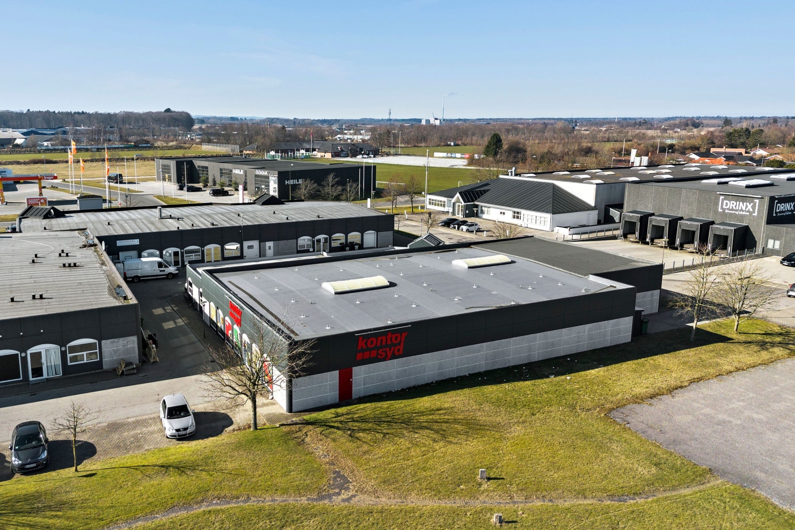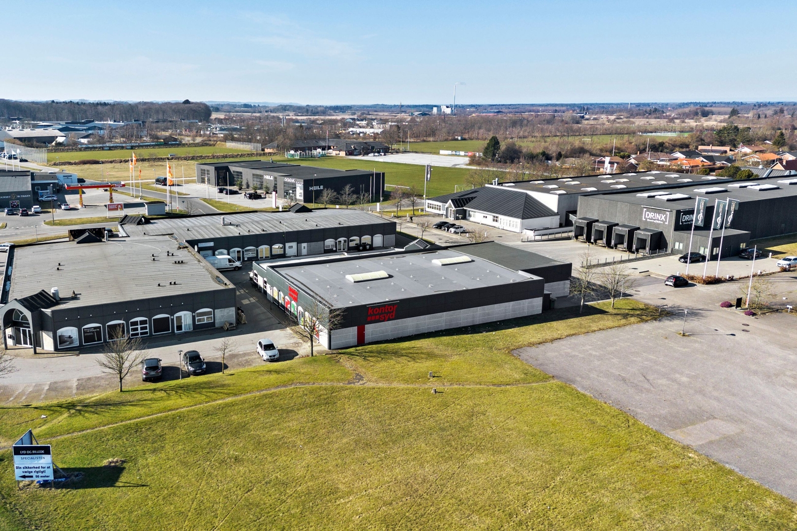 Ejendommens placering er en af de mest attraktive i området med nem adgang til motorvej og en høj trafikmængde på ca. 7.000 biler om dagen, hvilket giver maksimal synlighed. Ejendommen ligger i et erhvervsområde med store, kendte naboer som KVIK Køkkener, Lyd og Billedspecialisten, Dyrup og Drinx. På den modsatte side af vejen finder du populære detailhandelsbutikker som Sport 24 outlet, Elgiganten, Flugger, Lemvig og Muller og Power.