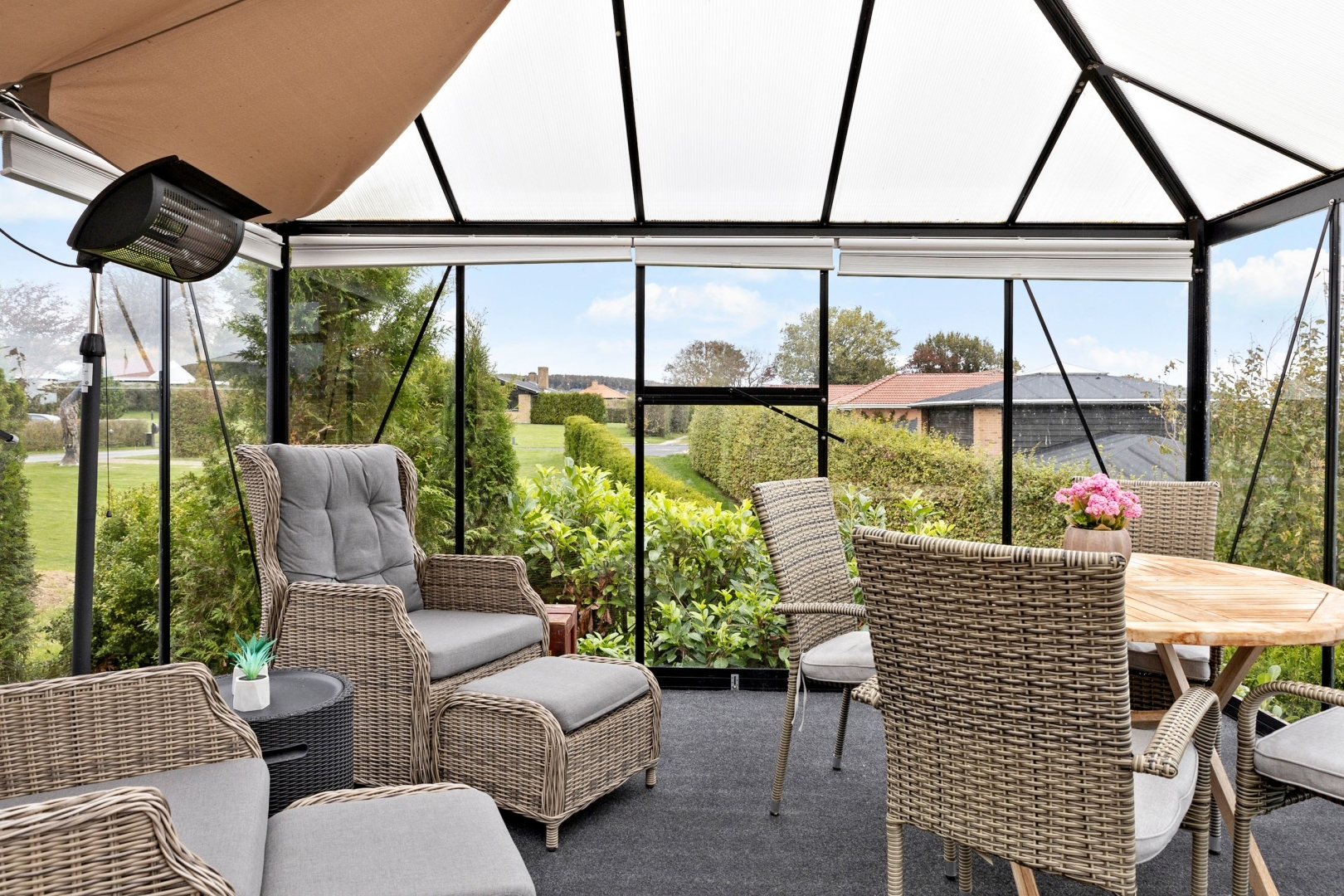 På energisiden er ejendommen både effektiv og tidssvarende. Der er installeret solceller fra 2012, og huset opvarmes via en luft-til-vand varmepumpe, som sikrer en økonomisk og miljøvenlig varmeforsyning. I stuen suppleres varmen af en luft-til-luft varmepumpe, der giver hurtig og fleksibel opvarmning. Hele villaen har gulvvarme, med undtagelse af de to børneværelser, og alle vinduer er udstyret med 2-lags energiruder, hvilket bidrager til et behageligt indeklima og et lavt energiforbrug.