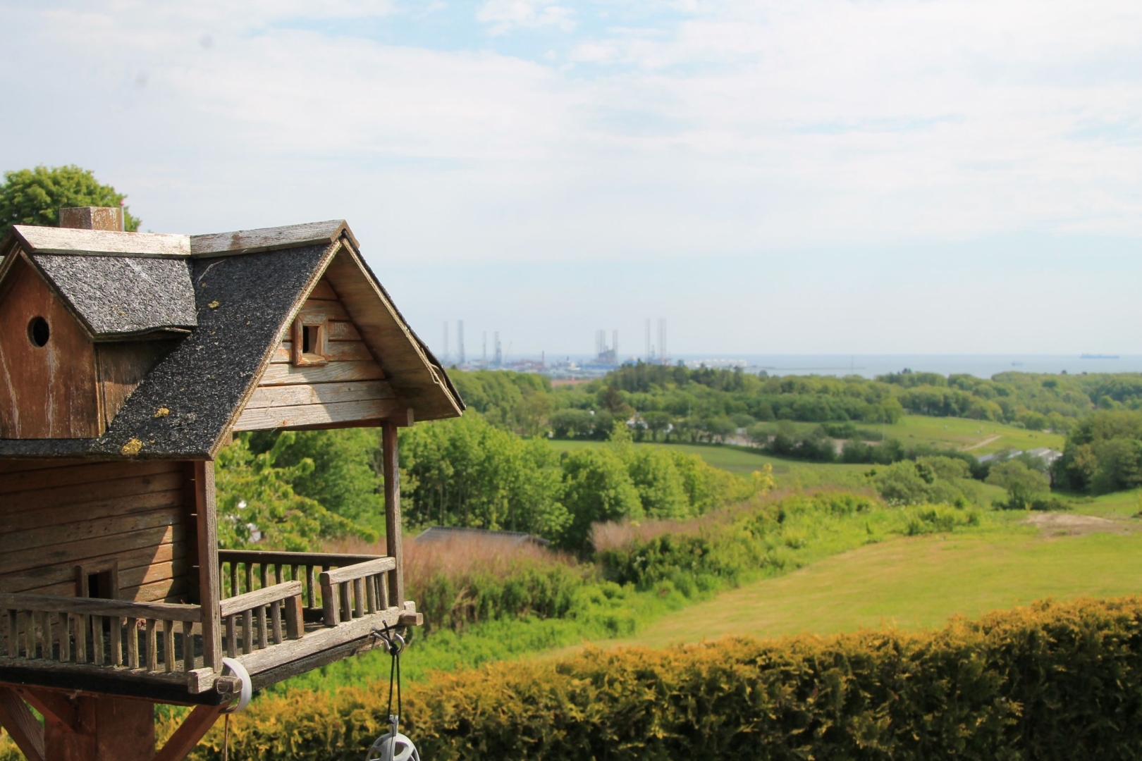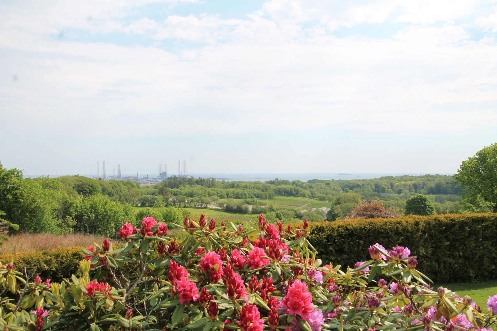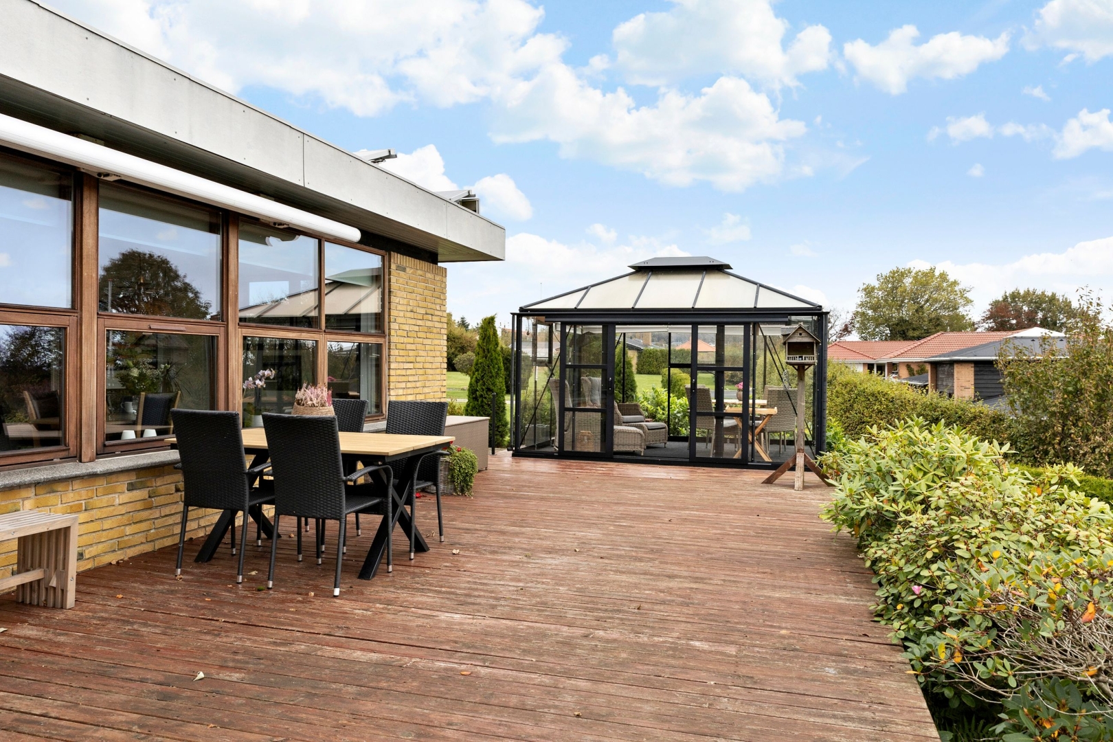 Villaen er opført i 1966 på en 2.145 m² stor grund, der grænser direkte op til skoven. Herfra er der en storslået udsigt over Frederikshavn, Kattegat, marker og skov. I 2019 blev der tilføjet et smukt orangeri ved den store udsigtsterrasse, som forlænger sommeren og skaber en vidunderlig oase med ro og lys. Til ejendommen hører desuden både en rummelig, integreret 36 m² stor garage med to porte og et udhus på 20 m², som giver ekstra plads til opbevaring, hobby eller værksted.