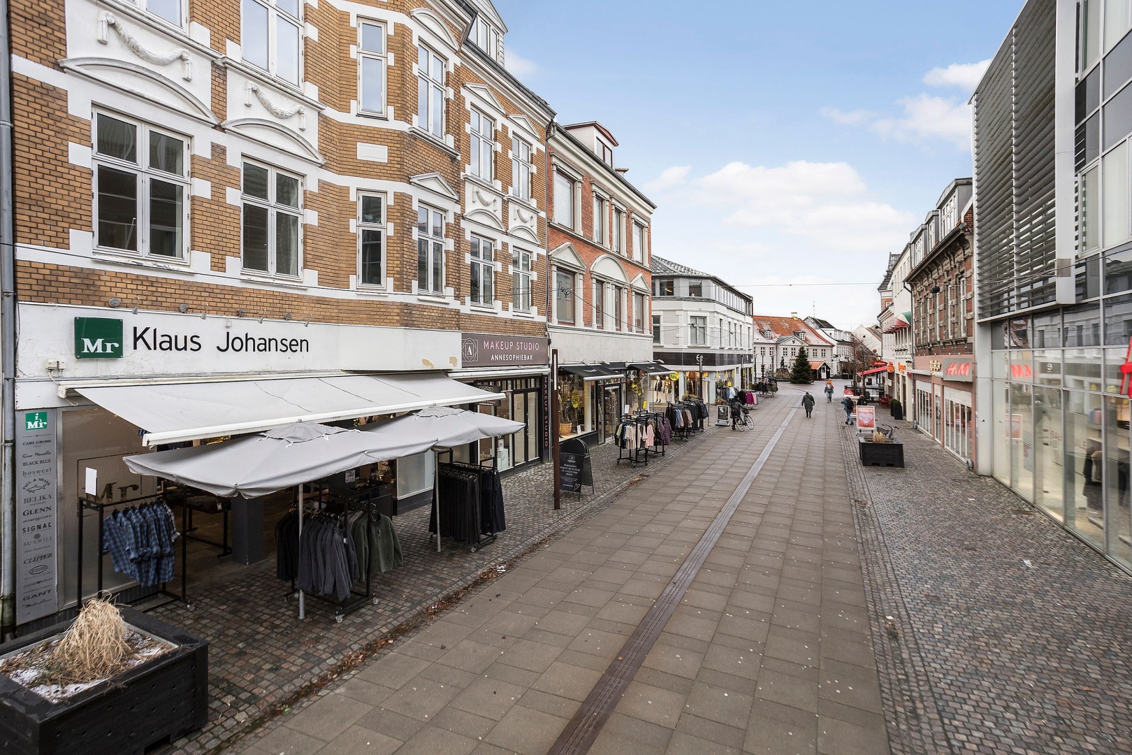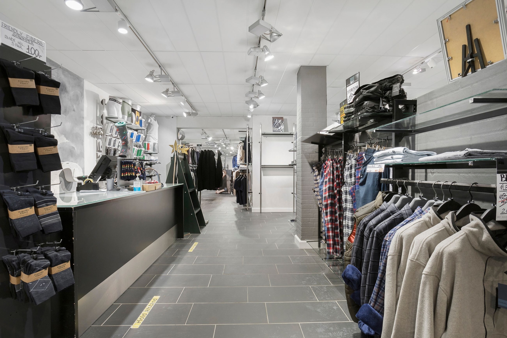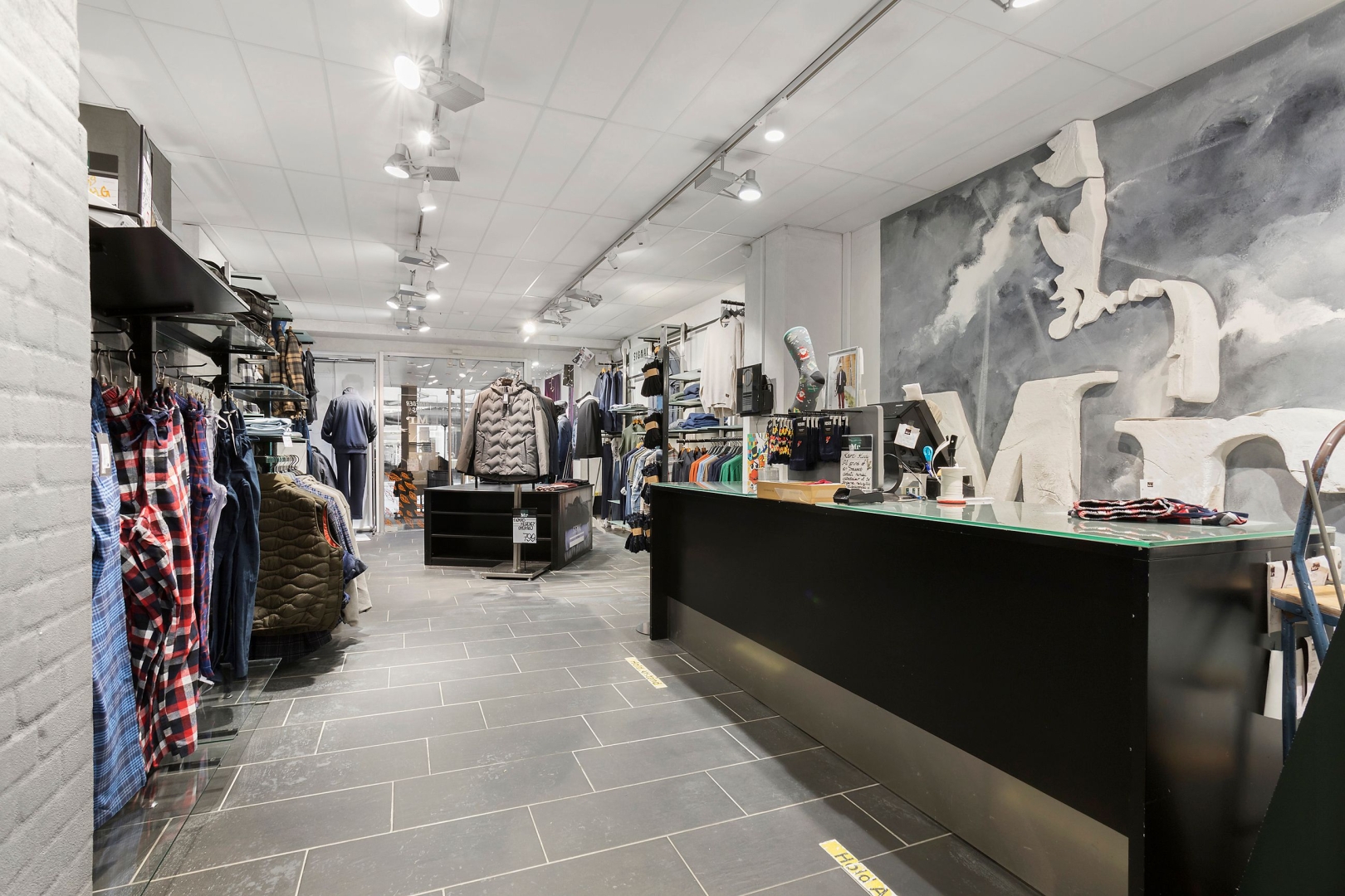 Velindrettet butikslokale med stor vinduesfacade mod gågaden
