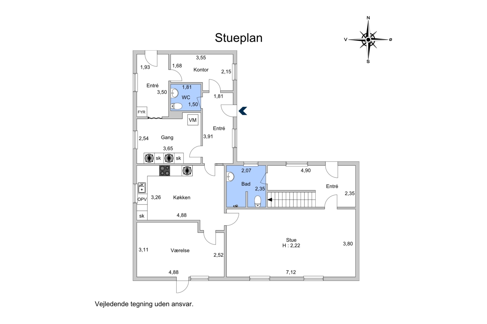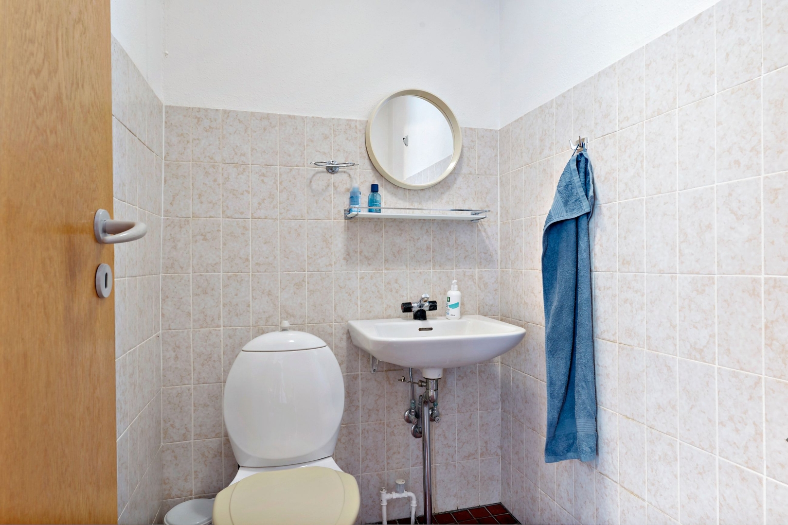 Villaen indeholder: Entre med klinkegulv - Bryggers med klinkegulv og plads til vaskemaskine og tørretumbler - Kontor - Gæstetoilet med gulvvarme - Køkken med spiseplads og hvide køkkenfronter - Værelse/spisestue med gulvvarme samt vinduesparti med terrassedør og udgang til vestvendt flisebelagt terrasse - Dejlig opholdsstue med trægulv - Entre med klinkegulv med gulvvarme og trappe til 1. sal - Skønt badeværelse med klinkegulv med gulvvarme og bruseniche.