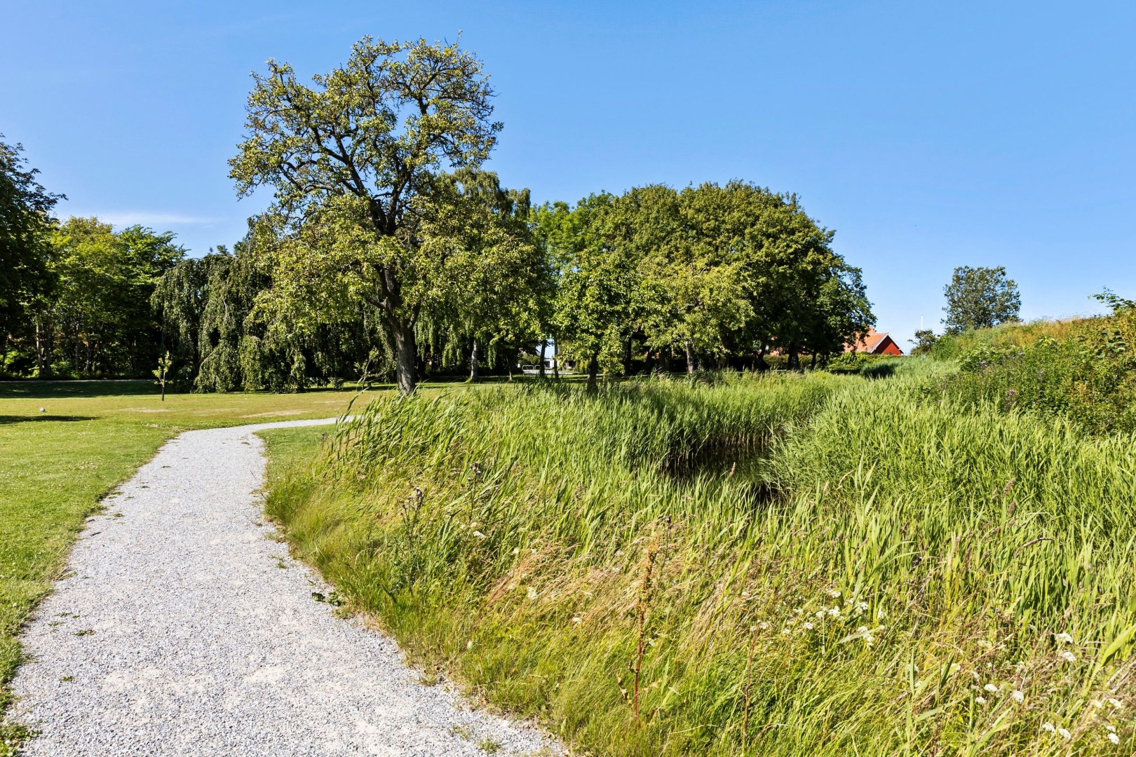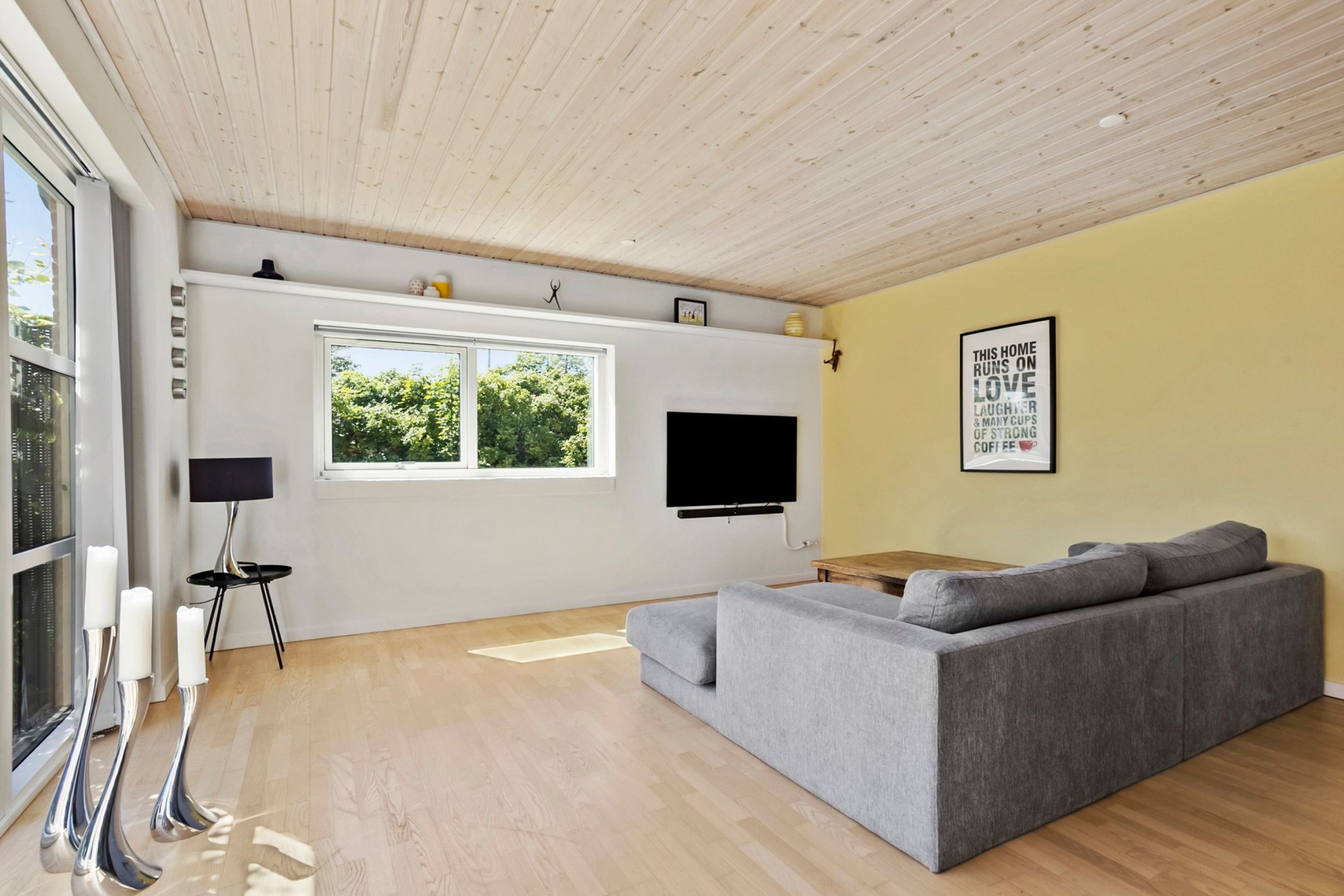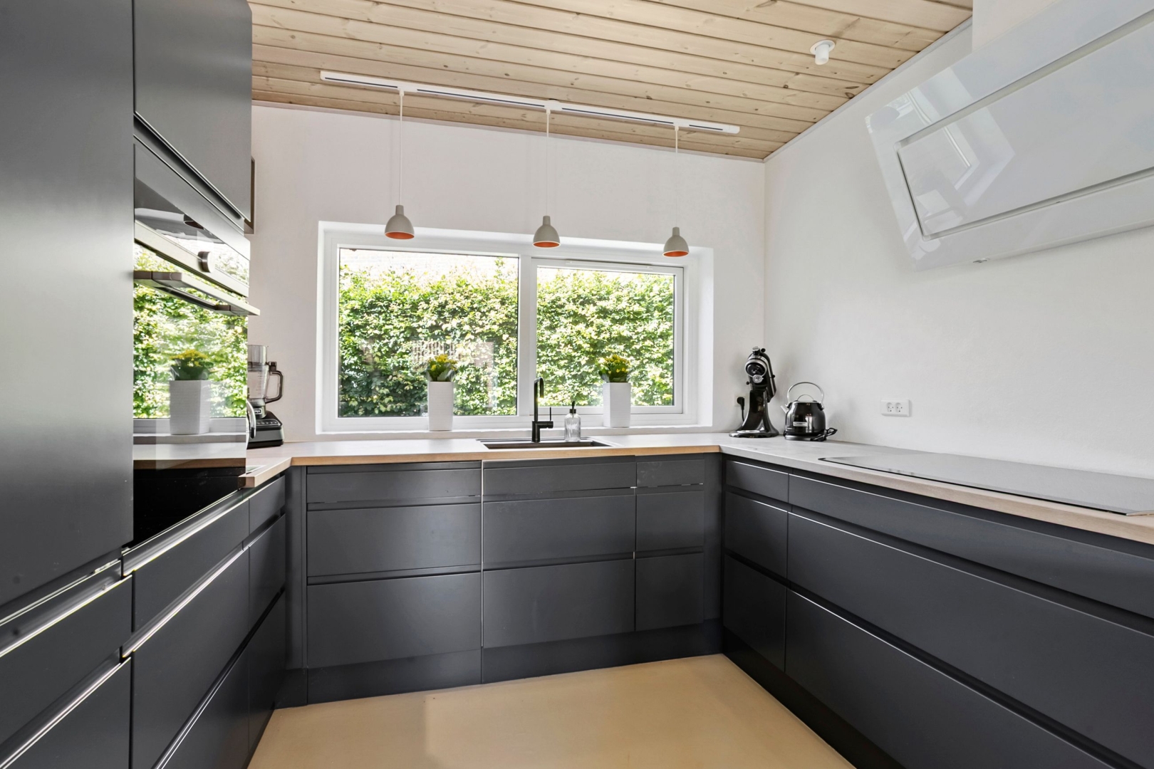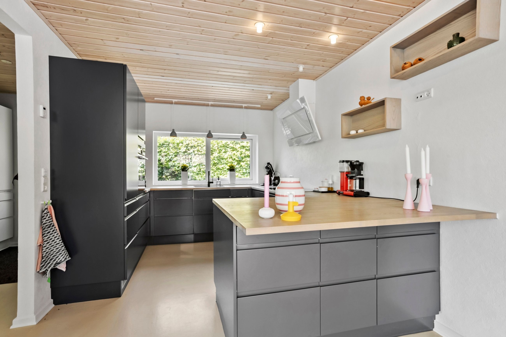 Grunden er overskuelig med sine 273 kvadratmeter, og haven kræver derfor kun et minimum af arbejde. I stedet kan I nyde udelivet på den sydvendte, ugenerede fliseterrasse eller slappe af i skyggen på den træbelagte terrasse mod nord.