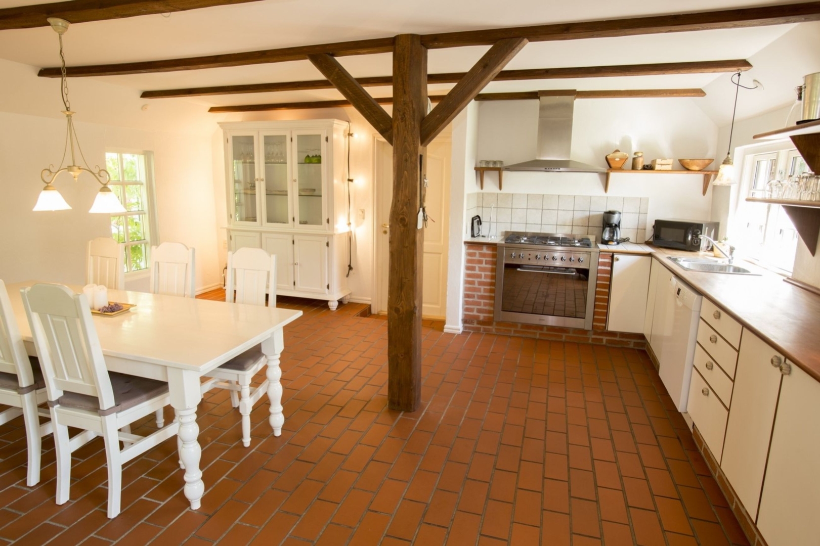 Østvendt længe er indrettet som bolig der indeholder, forstue med garderobe, lækkert badeværelse med spa og bruseniche, bryggers, spisekøkken med god spiseplads og brændeovn, fjernsynsstue med klinkegulve, opholds- og pejsestue med brændeovn og udgang til sydvendt terrasse og helt lukket velanlagt parklignende have, og der er endv trappe til overetage, der indeholder stort soveværelse med udgang til svalegang, og et værelse,