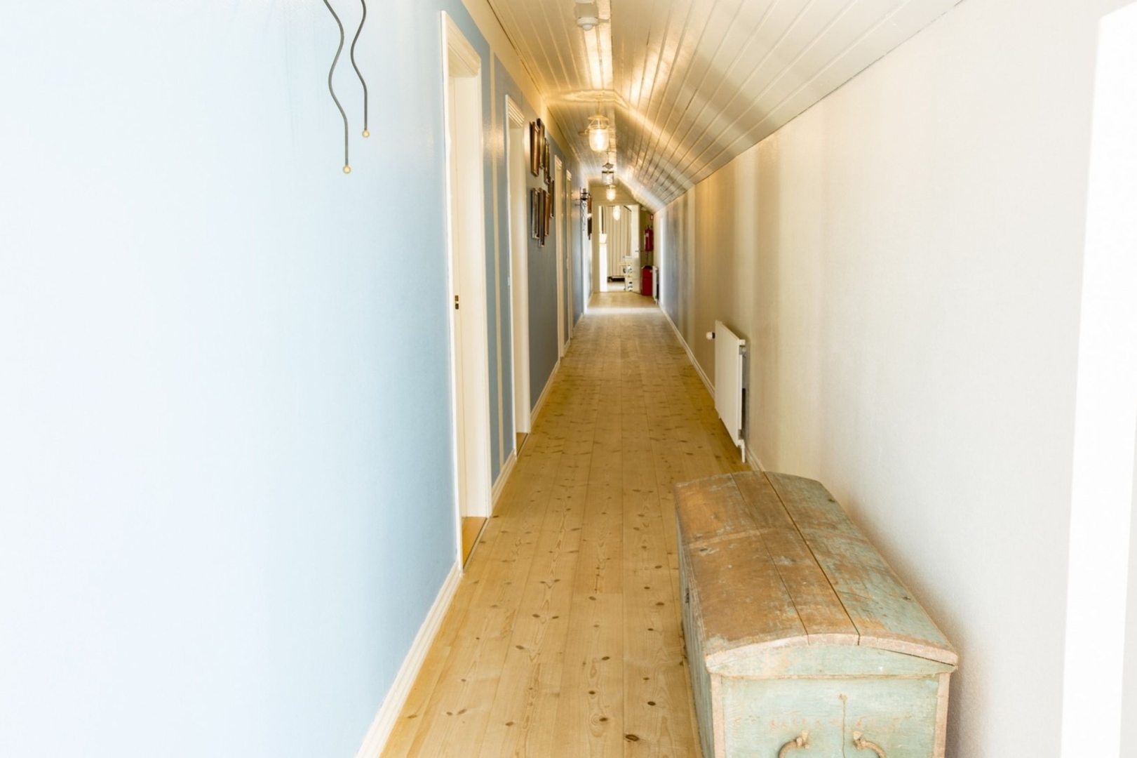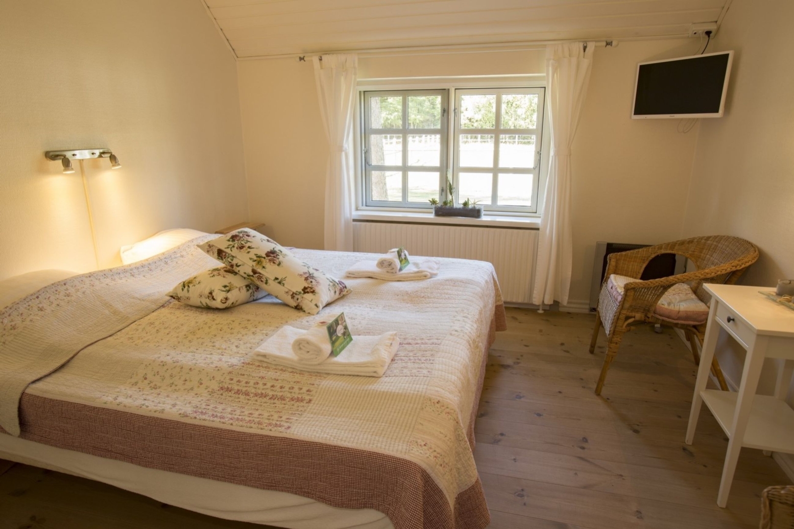 Indeholder: Forstue, 2 kundetoiletter, morgenmads restaurant i badehotel stil, fordeler gang med ludet trægulve, med indgang til 8 ens dobbeltværelser, indeholdende værelse med dobbelt seng, badeværelse med bruser, (2018); Fritliggende længe indrettet med 4 rigtig gode dobbeltværelser med egen indgang