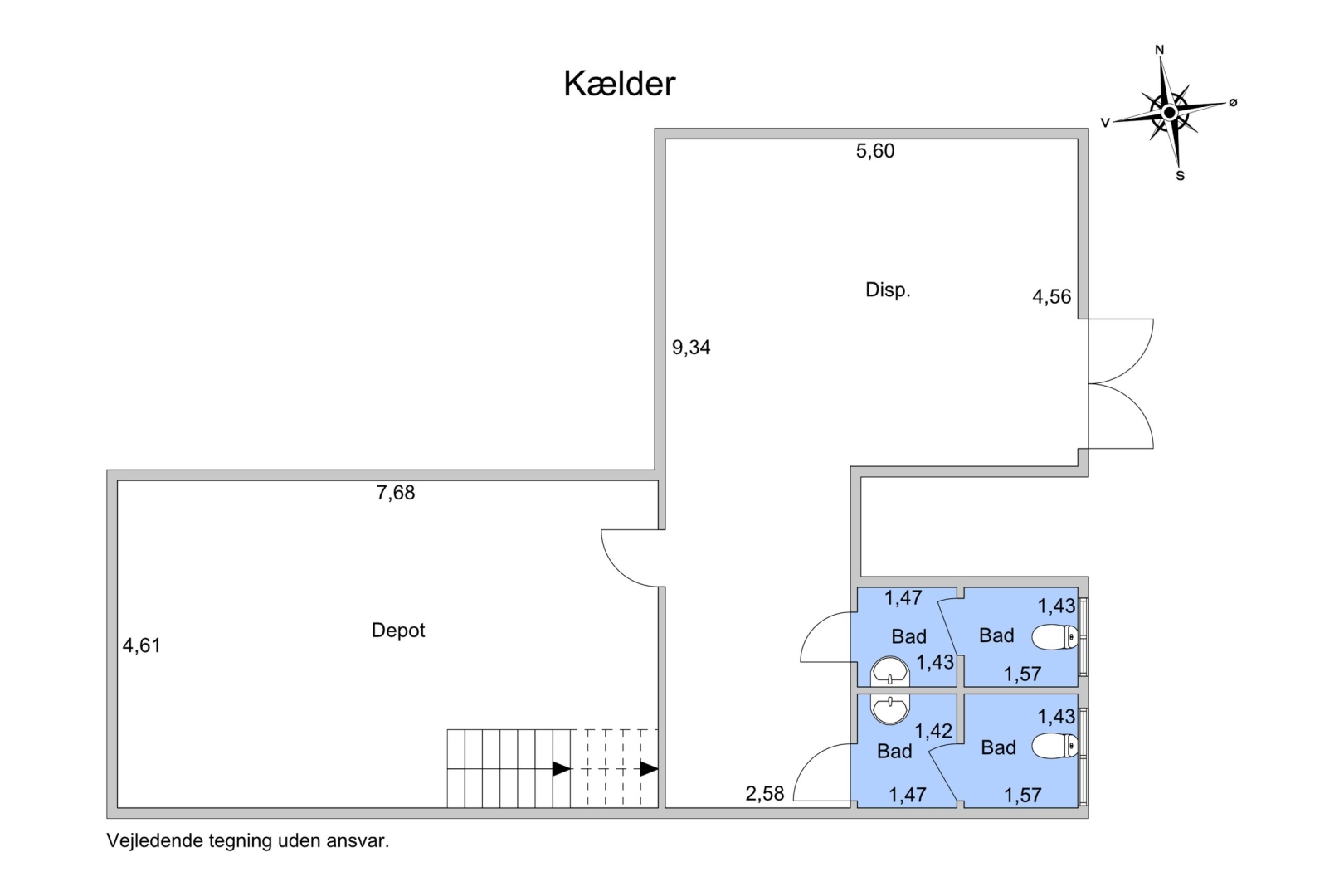 Ca. 40 m² kælderareal med lagerplads og personaletoilet