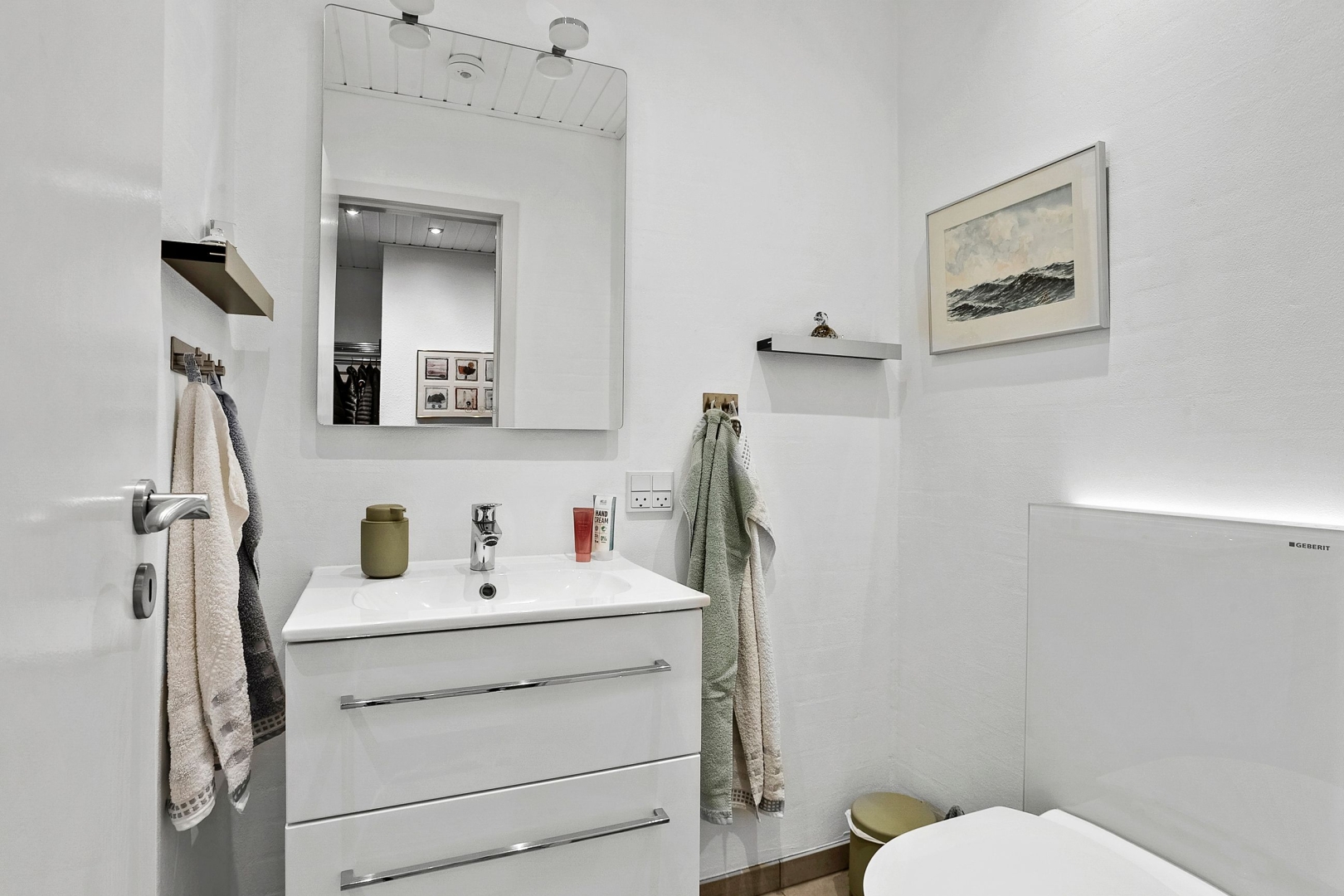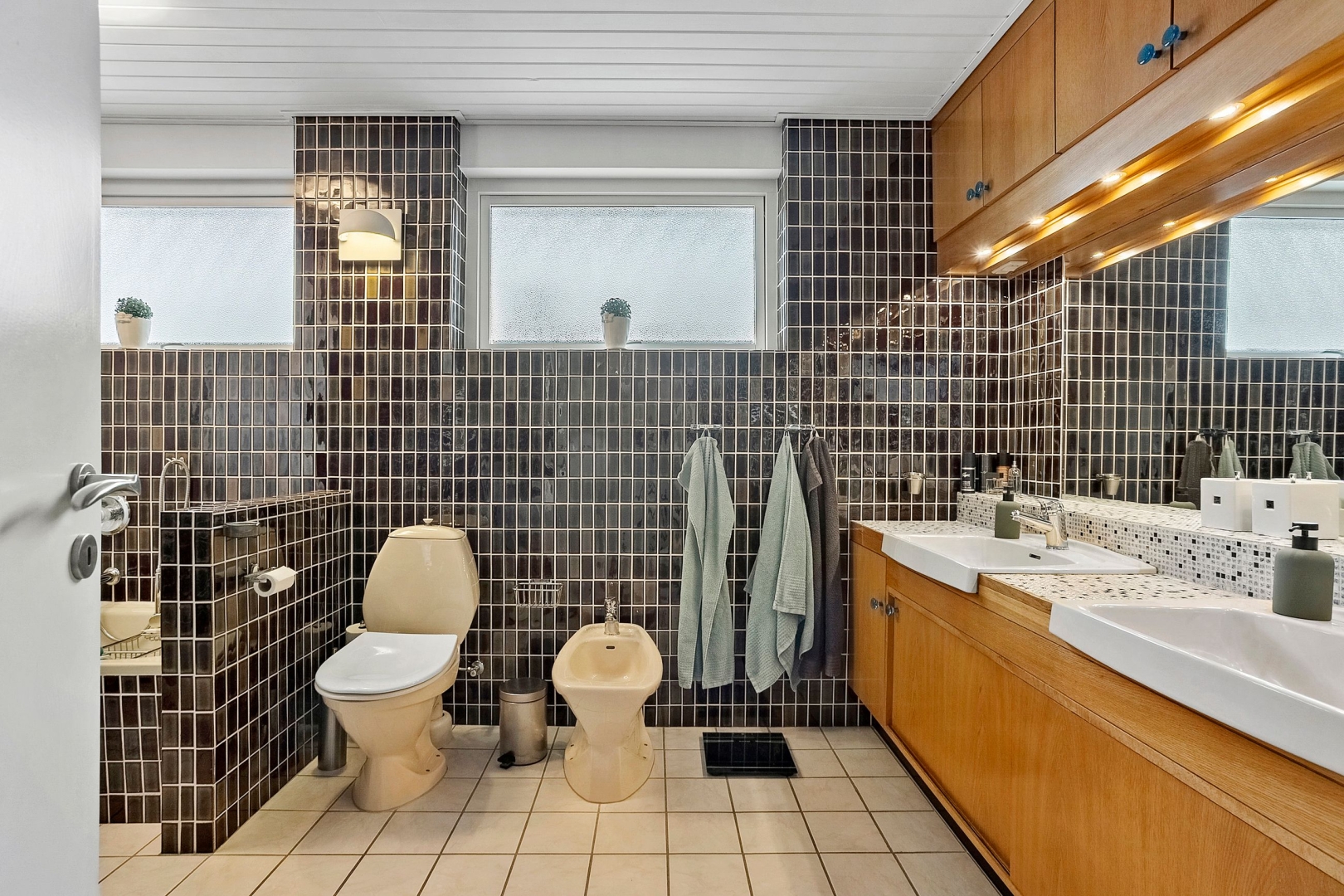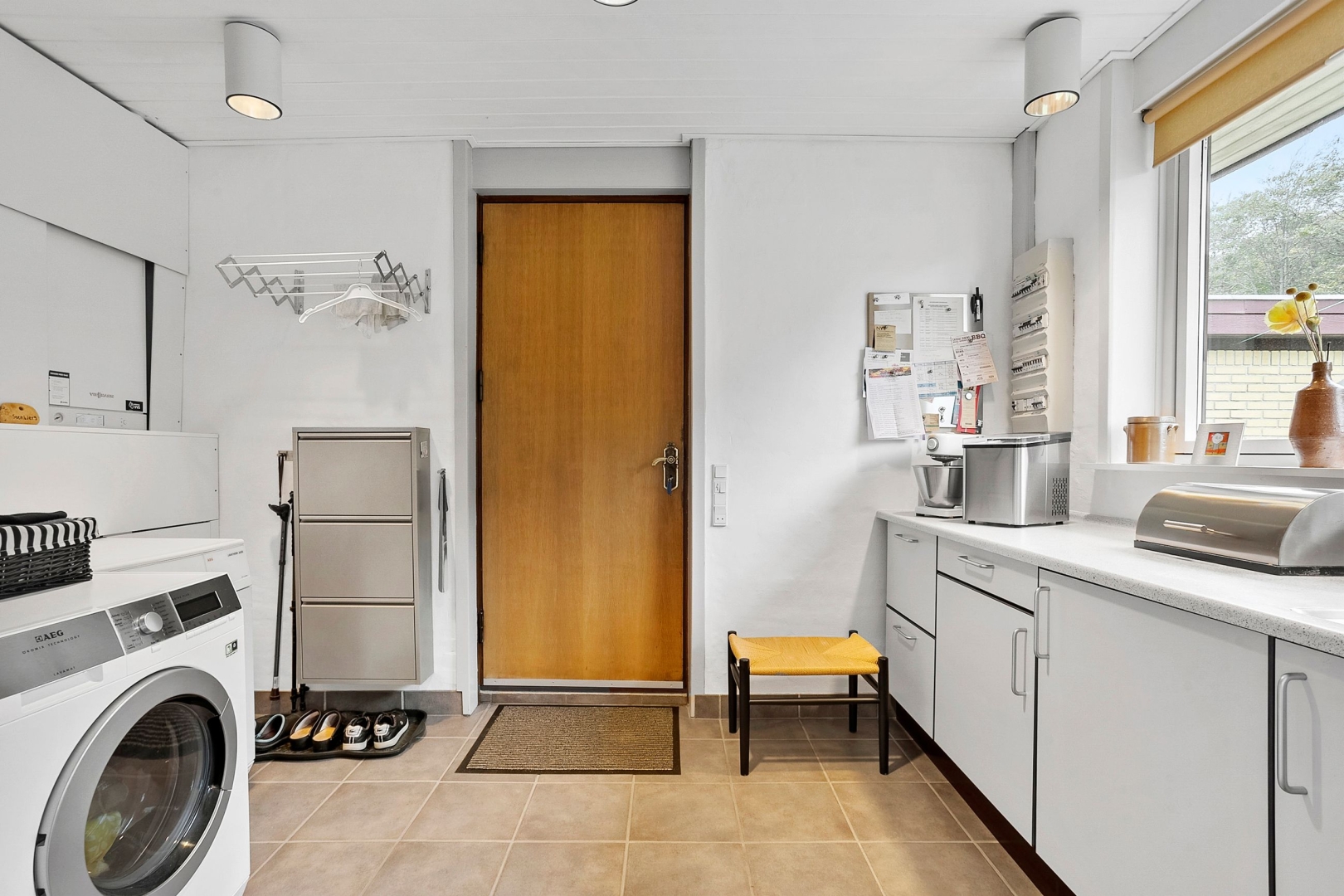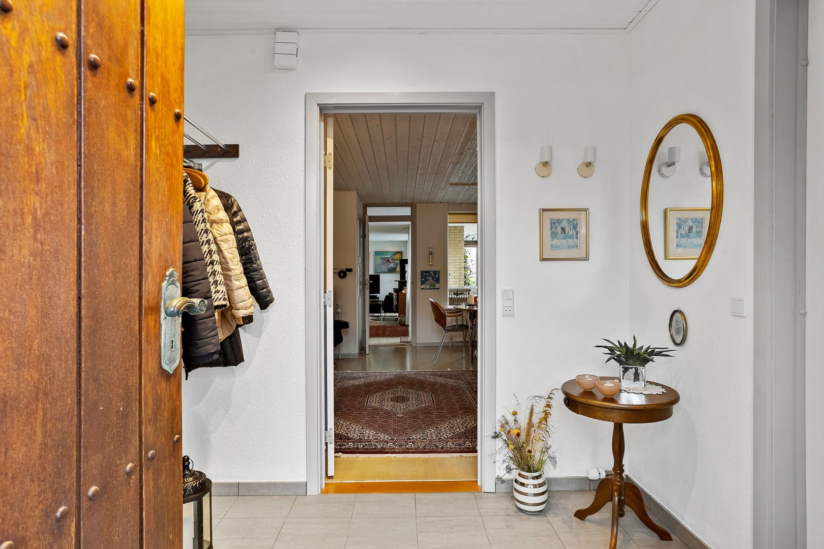 Villaen er løbende blevet vedligeholdt af sælger og byder på et køkken-alrum med glasdør til opholdsstuen og en halvmur, der elegant adskiller køkkenet fra alrummet. Opholdsstuen fremstår lys og indbydende med Rais brændeovn, gulvvarme, trægulv, et østvendt og et sydvendt gulv-til-loft vinduesparti samt endnu et vinduesparti med udgang til den store sydvendte og delvist overdækkede terrasse med åben pejs. Herudover rummer boligen et stort børneværelse, som tidligere har været opdelt i to og nemt kan opdeles igen, et godt soveværelse med faste skabe og trægulv samt endnu et børneværelse med trægulv og skabe.Herudover et rummeligt badeværelse med dobbelt håndvask, badekar, bruseniche, adgang til sauna/opbevaringsrum samt klinkegulv med gulvvarme. Derudover er der et flot gæstebadeværelse med bruseniche og klinkegulv med gulvvarme. Boligen rummer desuden et praktisk bryggers med klinkegulv og gulvvarme, bordplads samt plads til vaskemaskine og tørretumbler. Planløsningen fuldendes af en fordelingsgang og en indbydende entré med klinkegulv og gulvvarme.