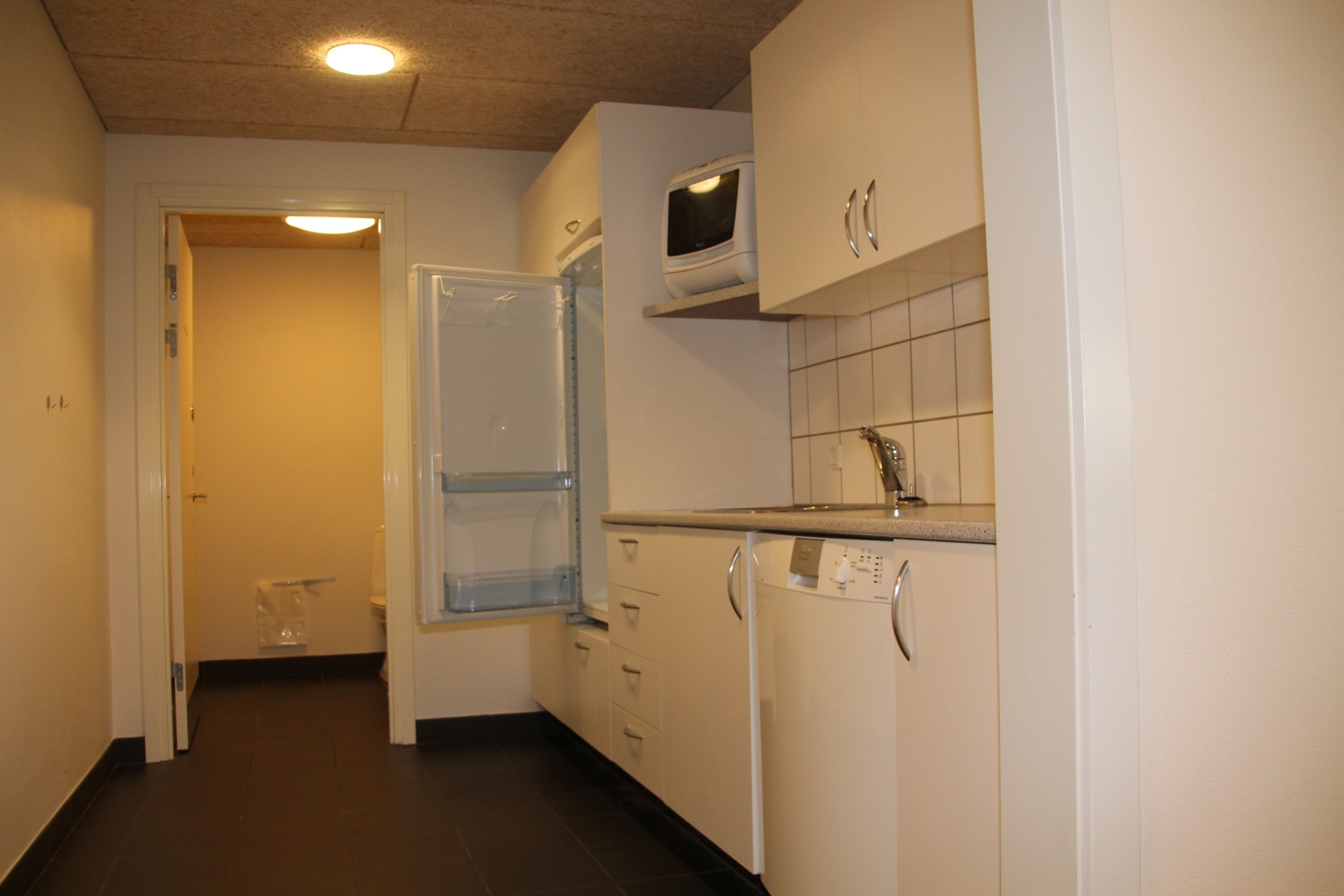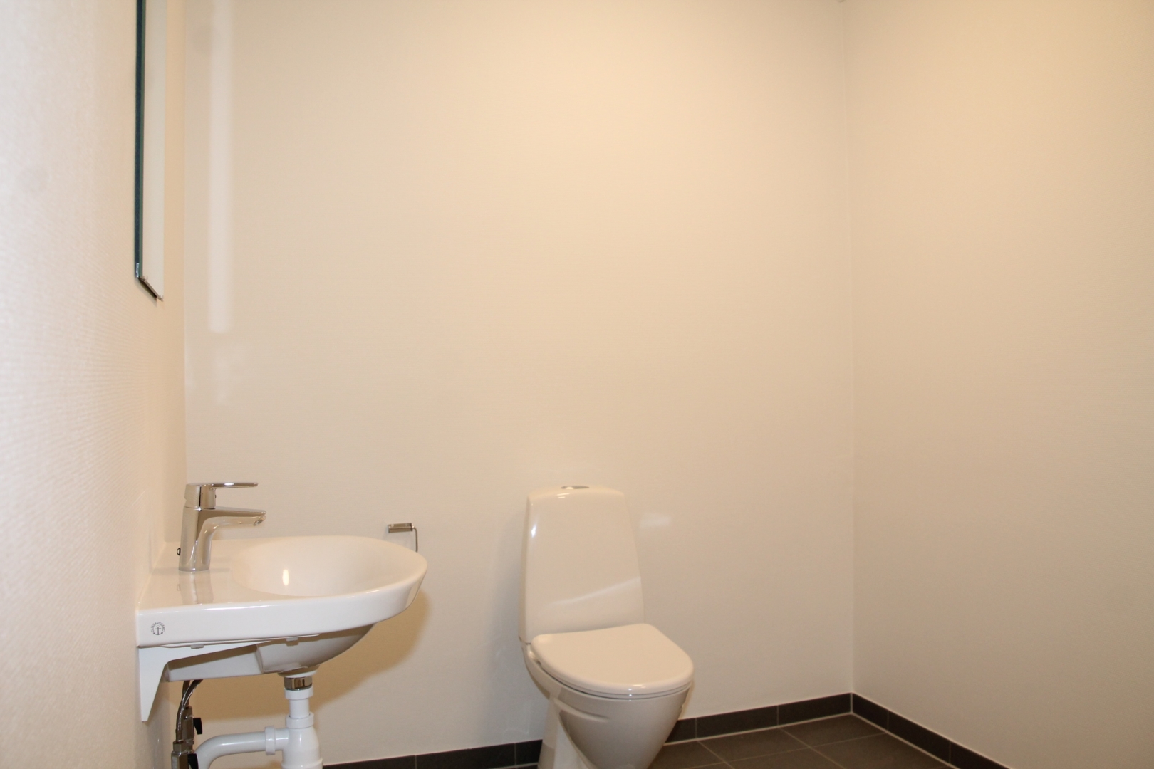 Fælles hall/gangareal - Gang med klinkegulv og planforsænket grundbelysning - Stort kontorlandskab med laminatgulv og planforsænket grundbelysning - 2 gode kontorer med flot laminatgulv og fast belysning, hvoraf det ene er med mindre køkken og toilet - Der er endvidere fælles teknikrum med krydsfelt til hver lejemål i ejendommen.