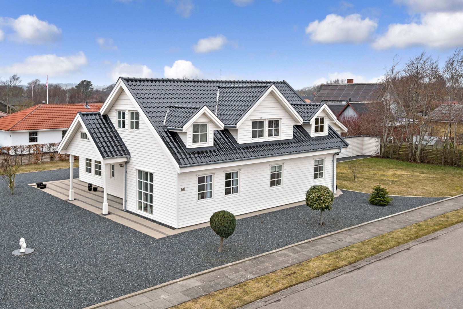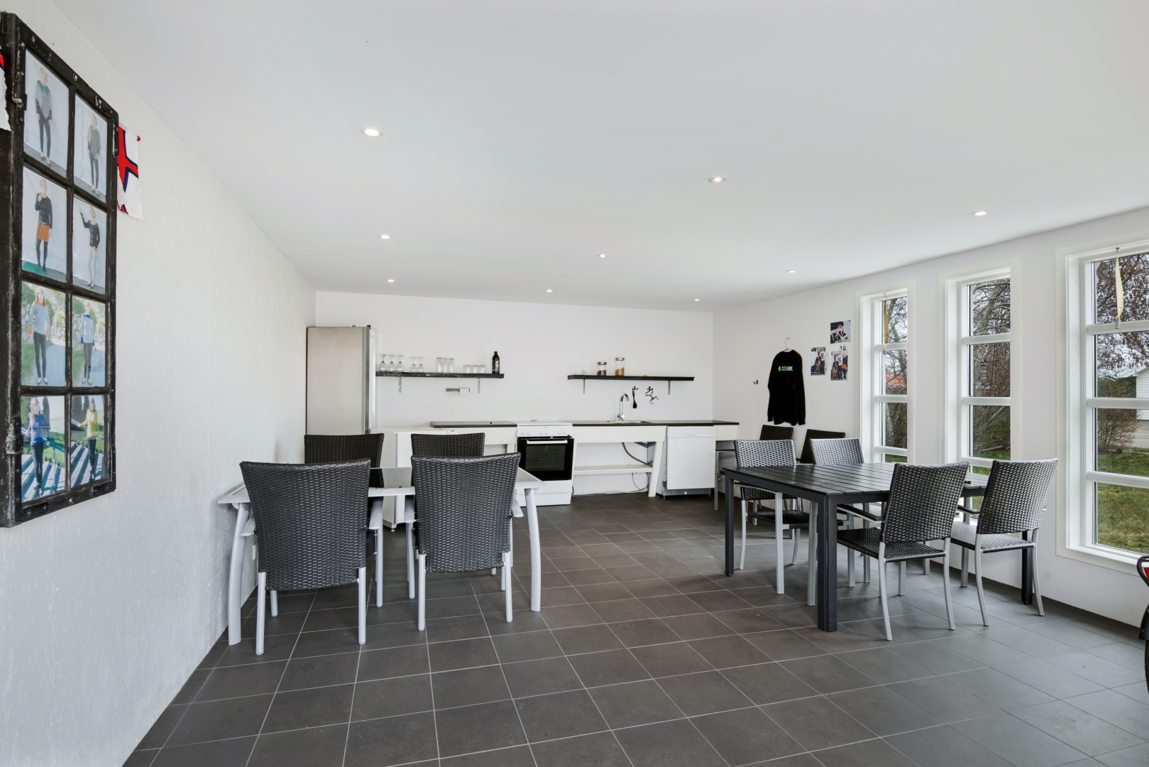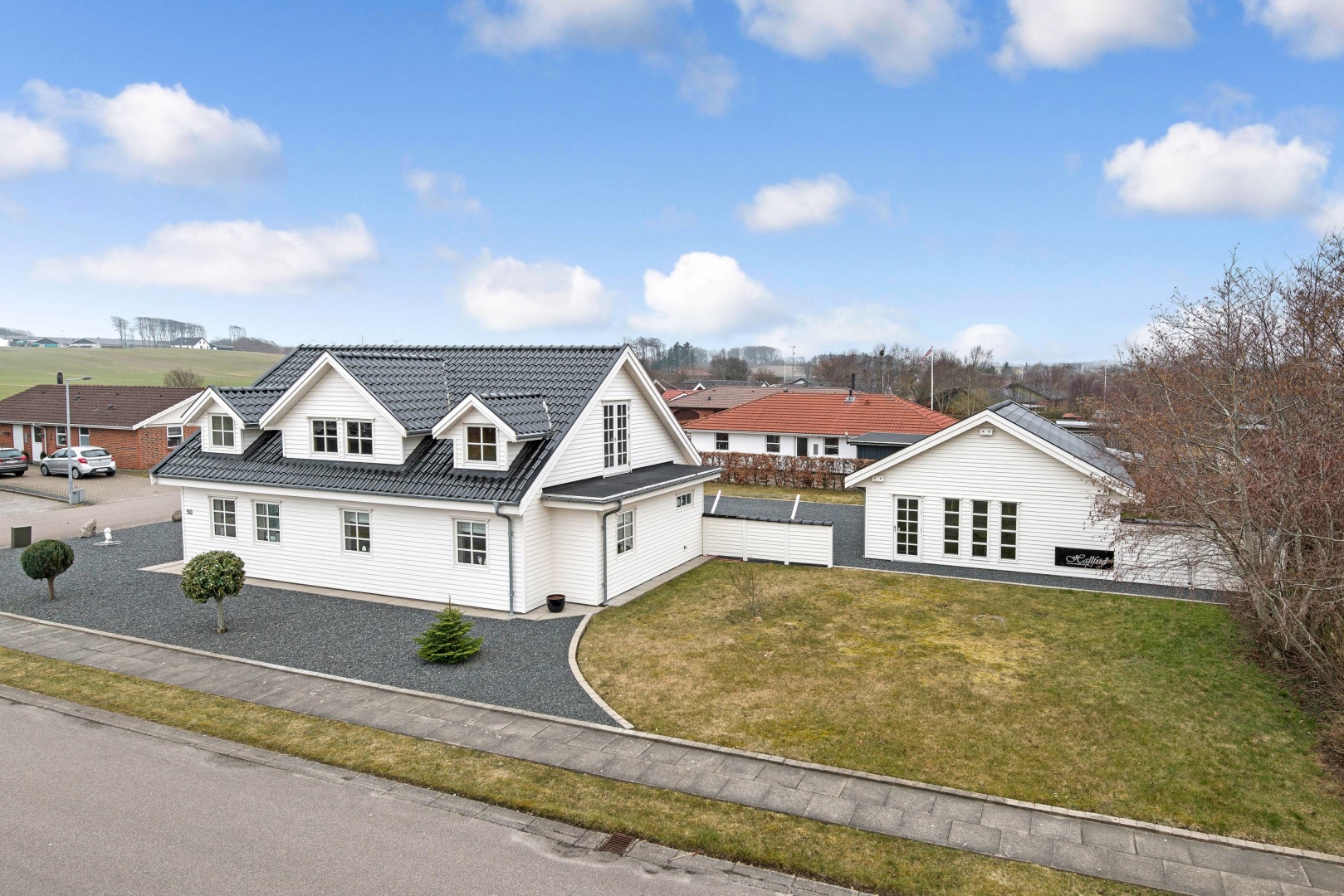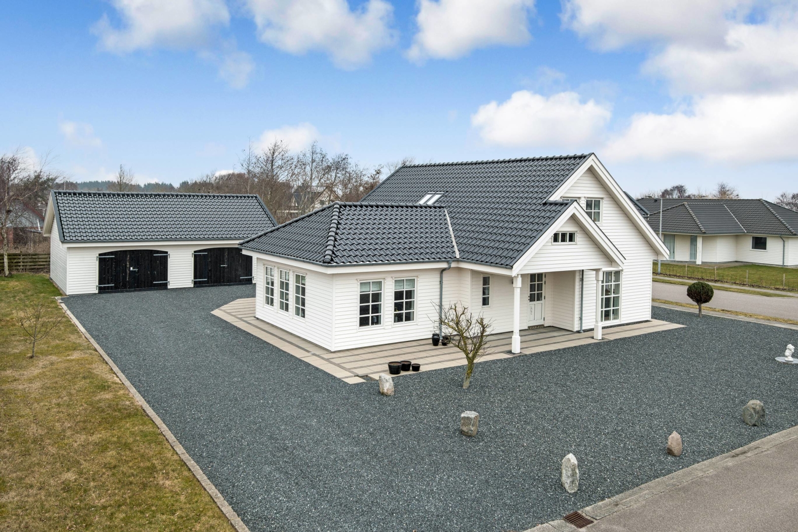 Udover boligen er der 70 m² dobbelt garage, opført i samme kvalitets materialer som boligen.