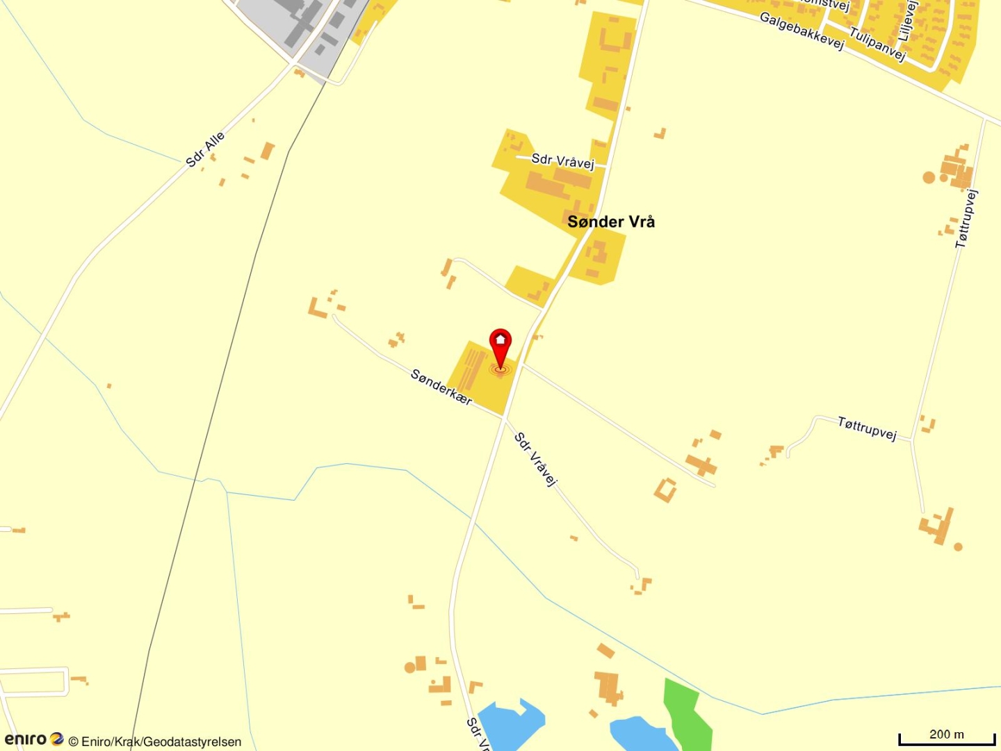 Ejendommen er beliggende til offentlig vej i Sdr. Vrå, med kort afstand til Vrå med godt handelsliv, skole, børneinstitutioner og gode idræts faciliteter. Fra Vrå er der gode bus- og togforbindelser til både Hjørring og Aalborg.