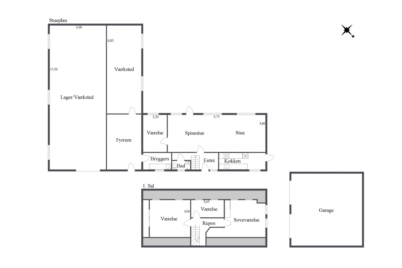141 m² regulær medbygget bygning med fyrrum, værksted og stort disponibelt rum, bygningen har flere anvendelsesmuligheder indenfor erhverv eller hobbies.