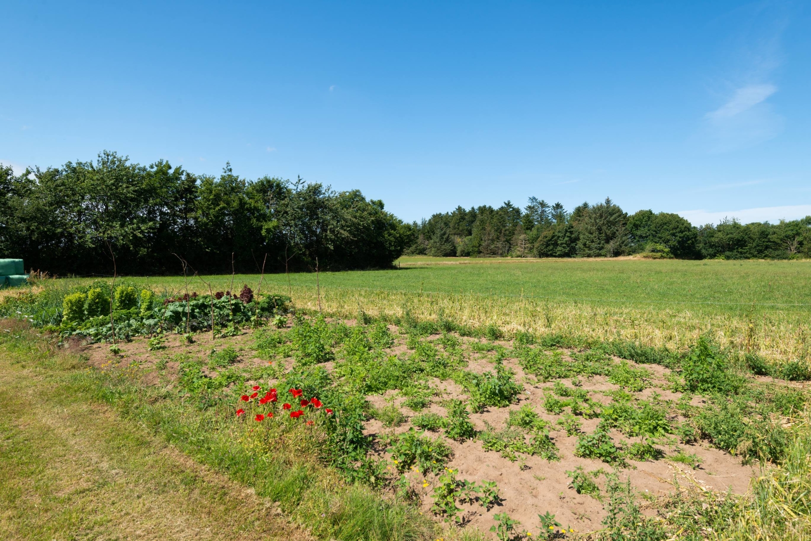 Ejendommens markareal, som er EU berettiget, er pænt aronderet ved bygningerne og udlagt i græs med omdrift.