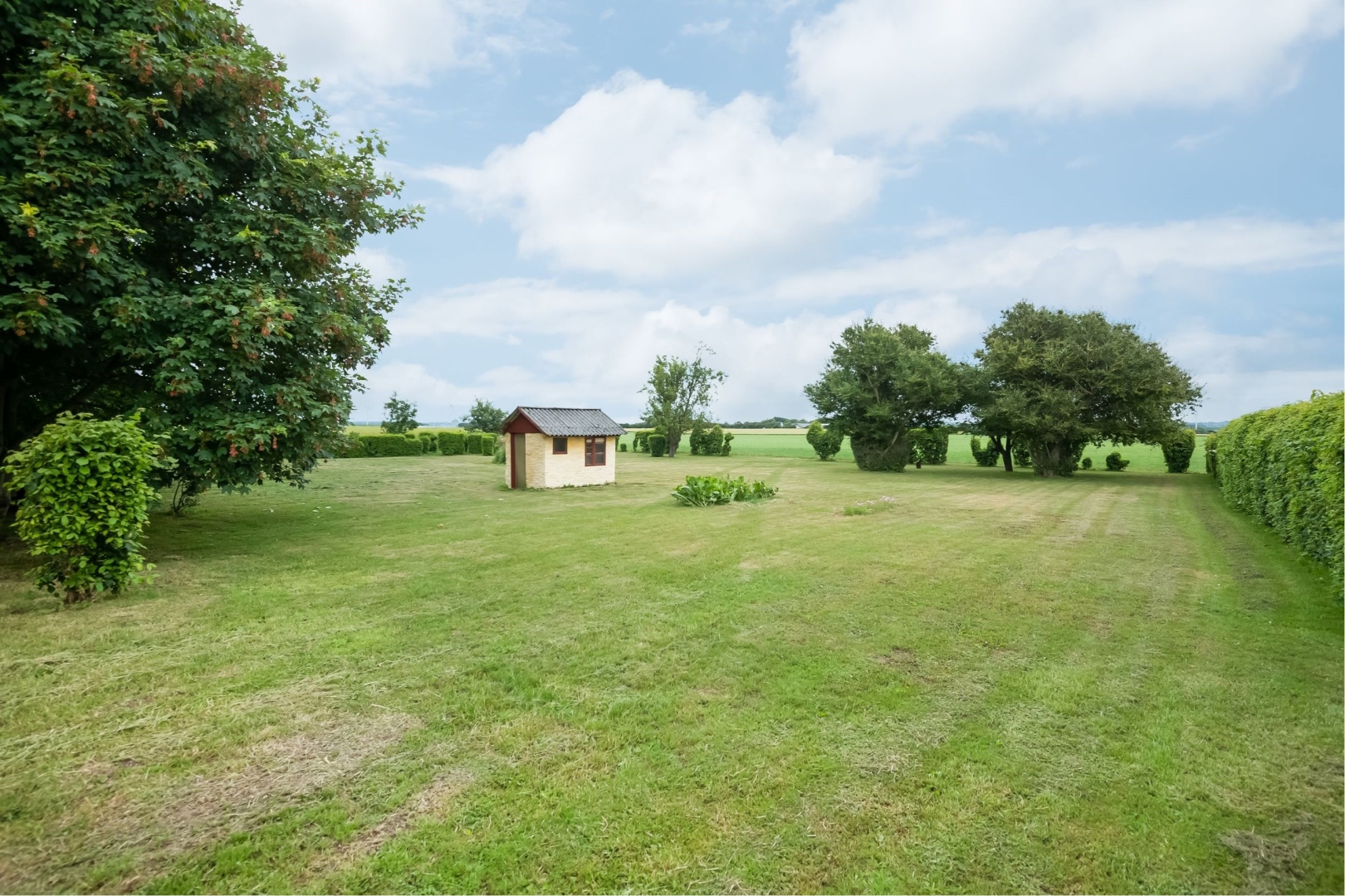 Ejendommens jordareal på 4,2 ha. er med gårdsplads og stor velanlagt have, resterende areal er på tiden forpagtet ud, og er EU-berettiget.