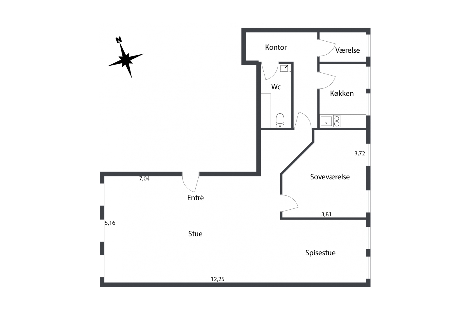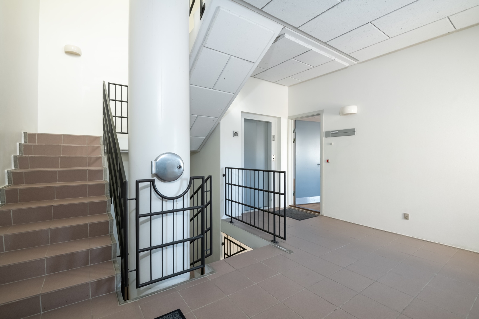Der er elevator og god trappeopgang til lys fælles repos med indgang til lejligheden, som er indrettet med stort lokale, hvor der er mulighed for opdeling efter behov, større værelse, mindre køkken, stort toilet uden brusefaciliteter.