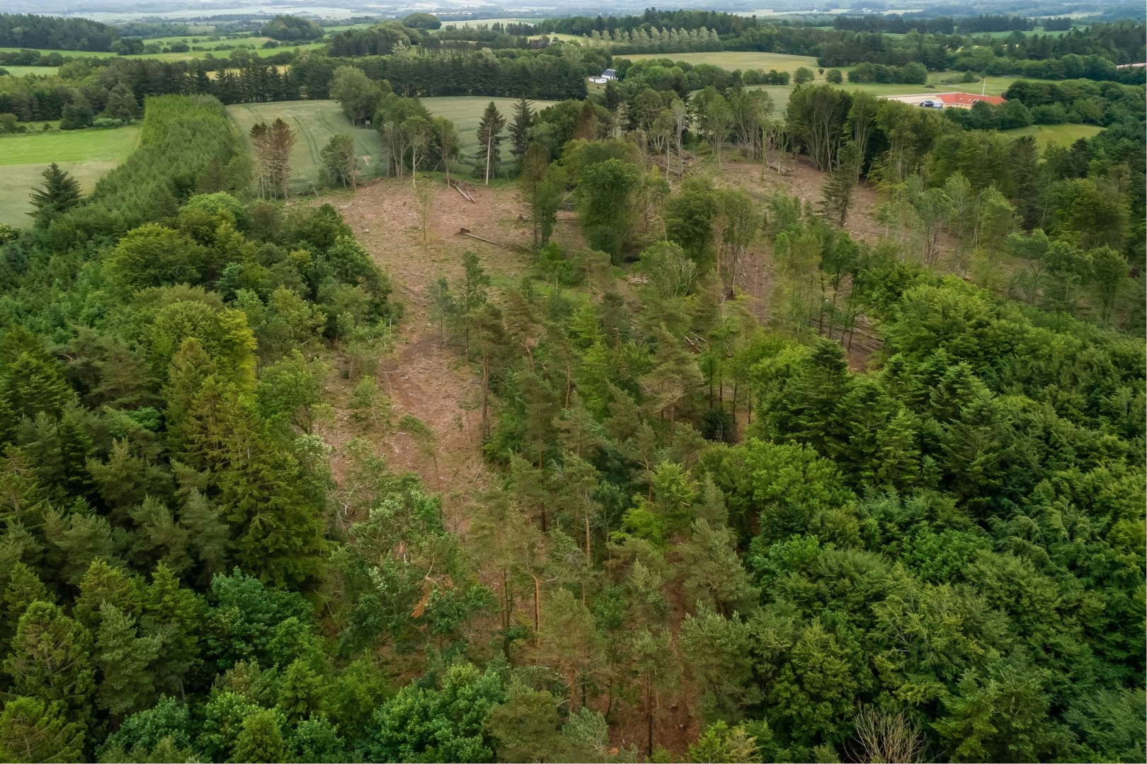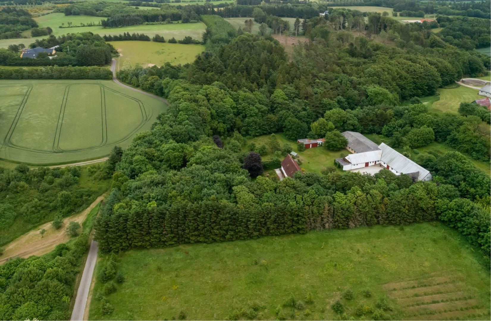 Ejendommen Neder Tange med et areal på hele 26,18 ha., hvoraf ca. 20 ha. er regulær landbrugsjord, ca. 4 ha. er flot blandet skovbevoksning beliggende i dejligt kuperet terræn ved ejendommen.