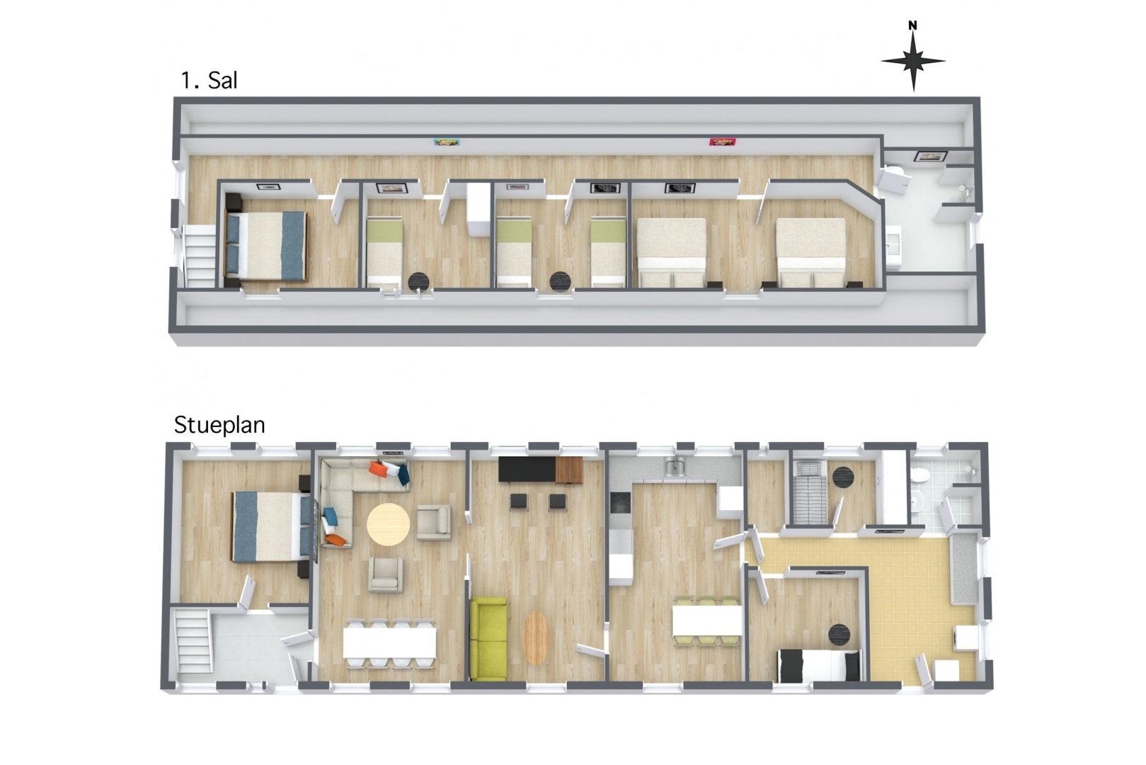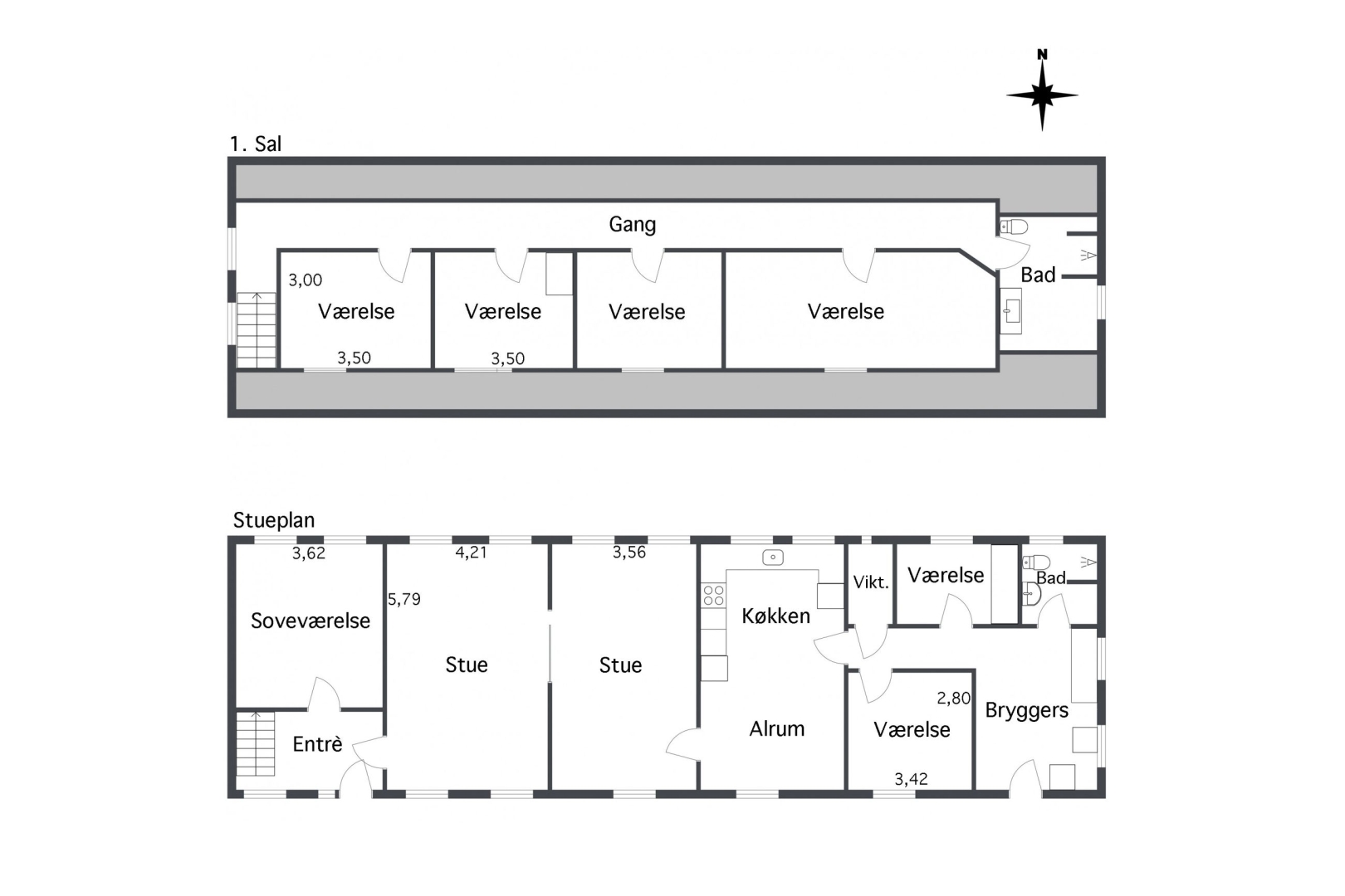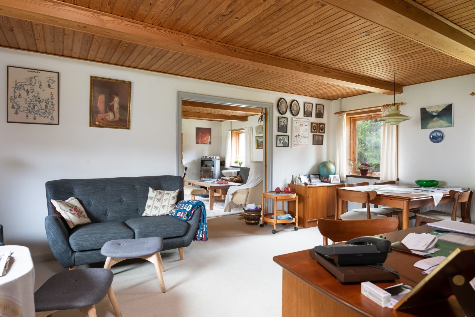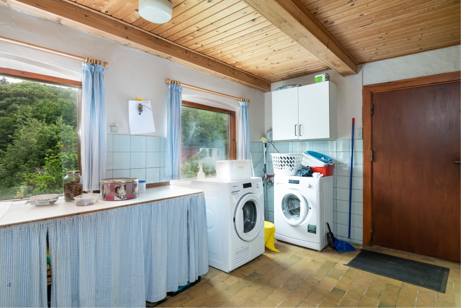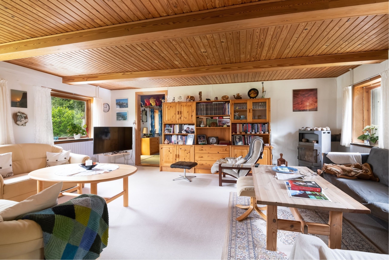 Fritliggende stuehus med 200 m² bolig i 2 plan, indrettet med i stueplan entré, bryggers, badeværelse, stort køkken/alrum, 2 stuer den ene med brændeovn, soveværelse og 2 værelser, fra entré god trappeopgang til 1 sal med 4 værelser og badeværelse med bruseniche.