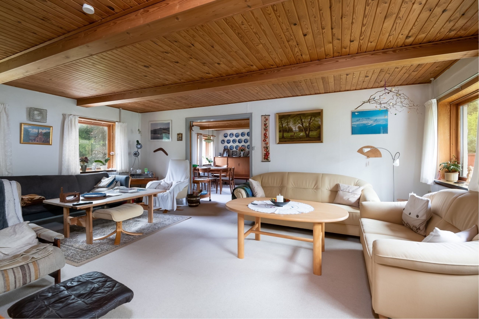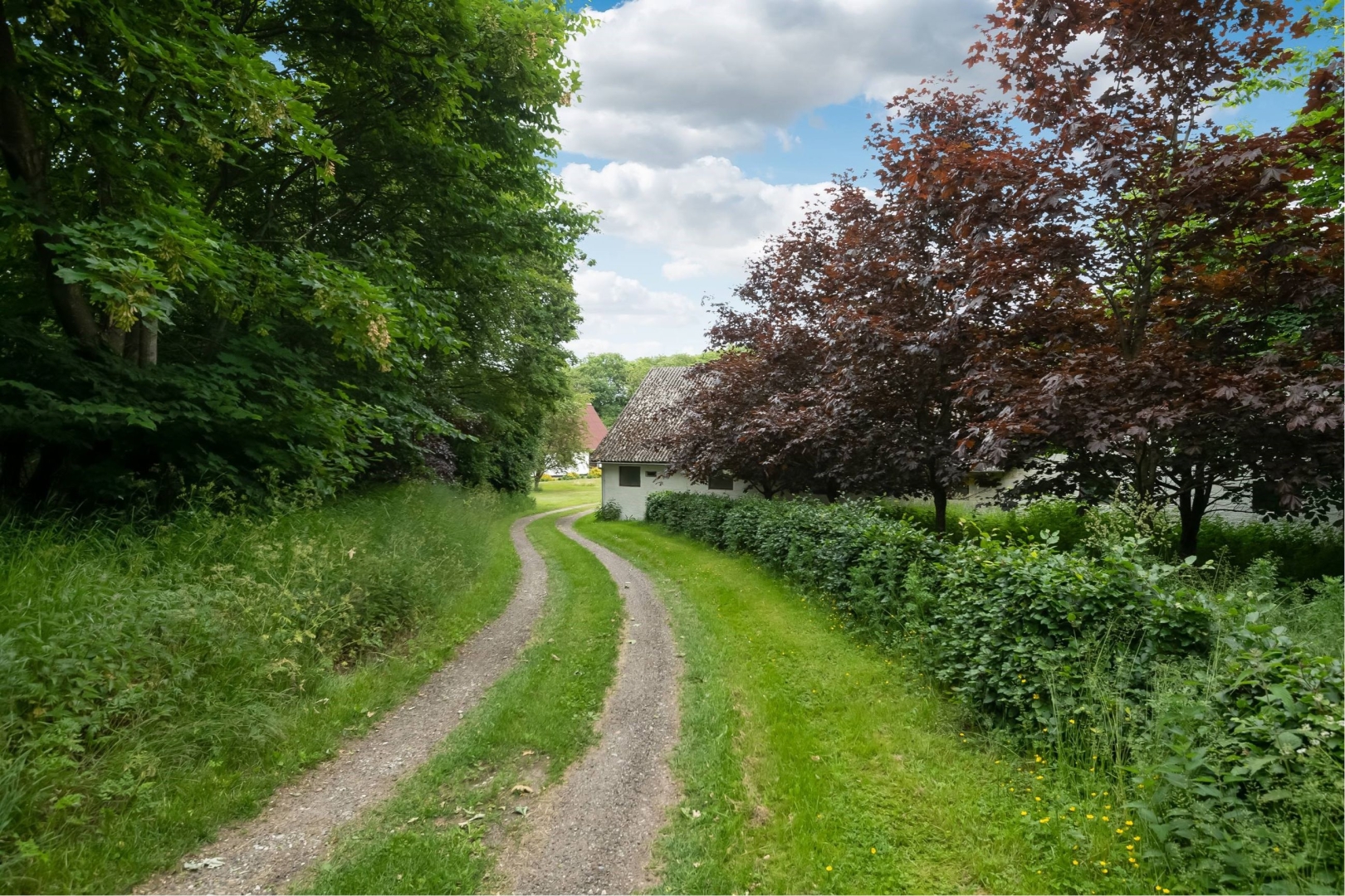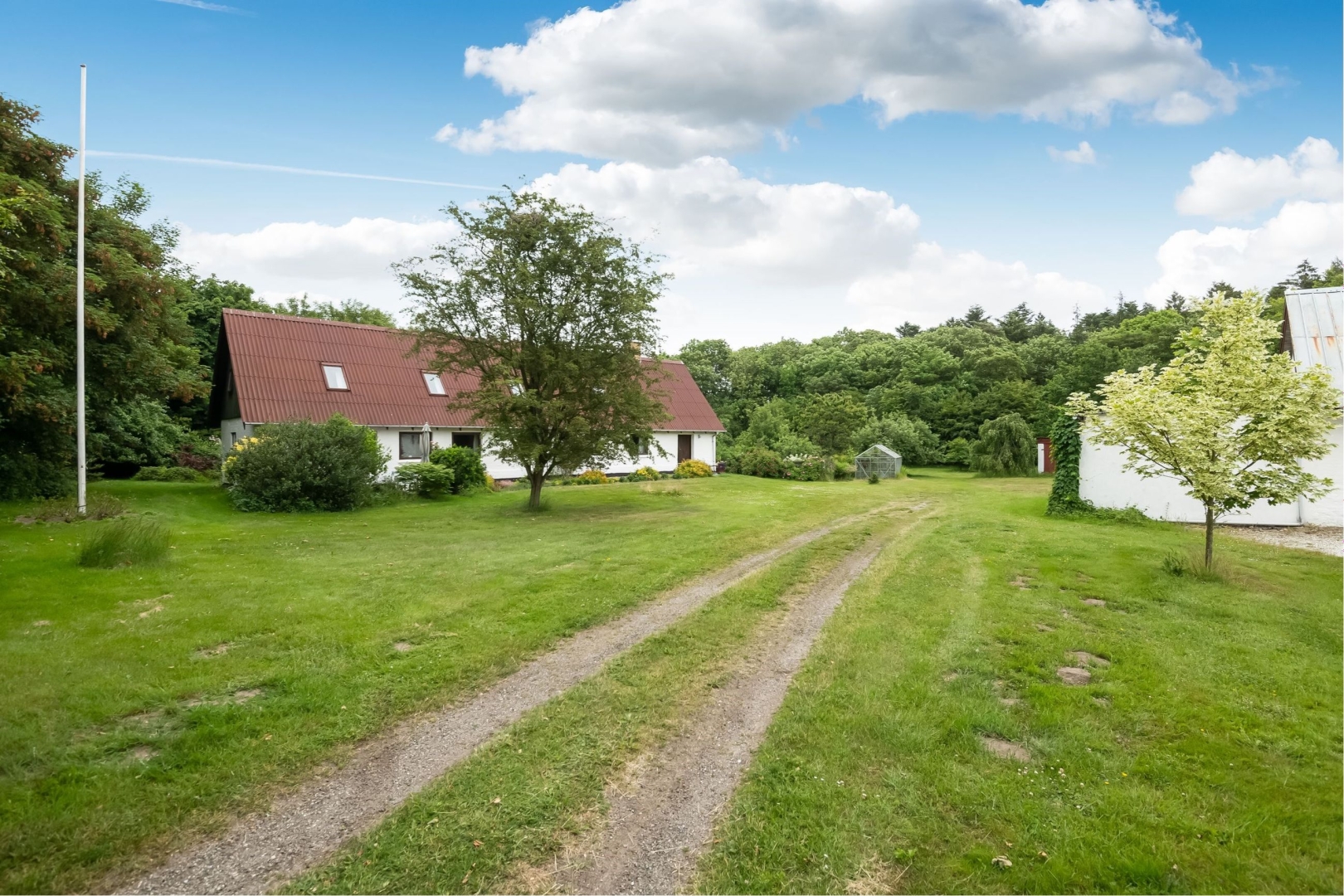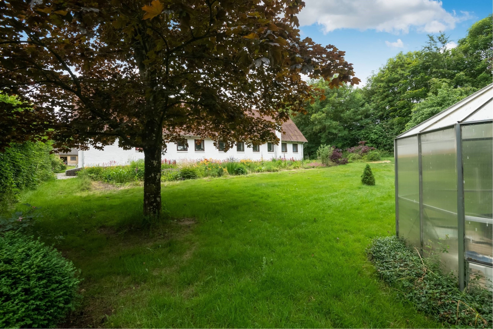 Ejendommens udenomsarealer er meget velholdte. Stor have med mange forskelligartede træer, buske og planter, 2 drivhuse, stort område med frugttræer, der støder op til ejendommens hyggelige skov, hvor man hele året virkelig kan nyde naturen med en gåtur på de gode anlagte stier.