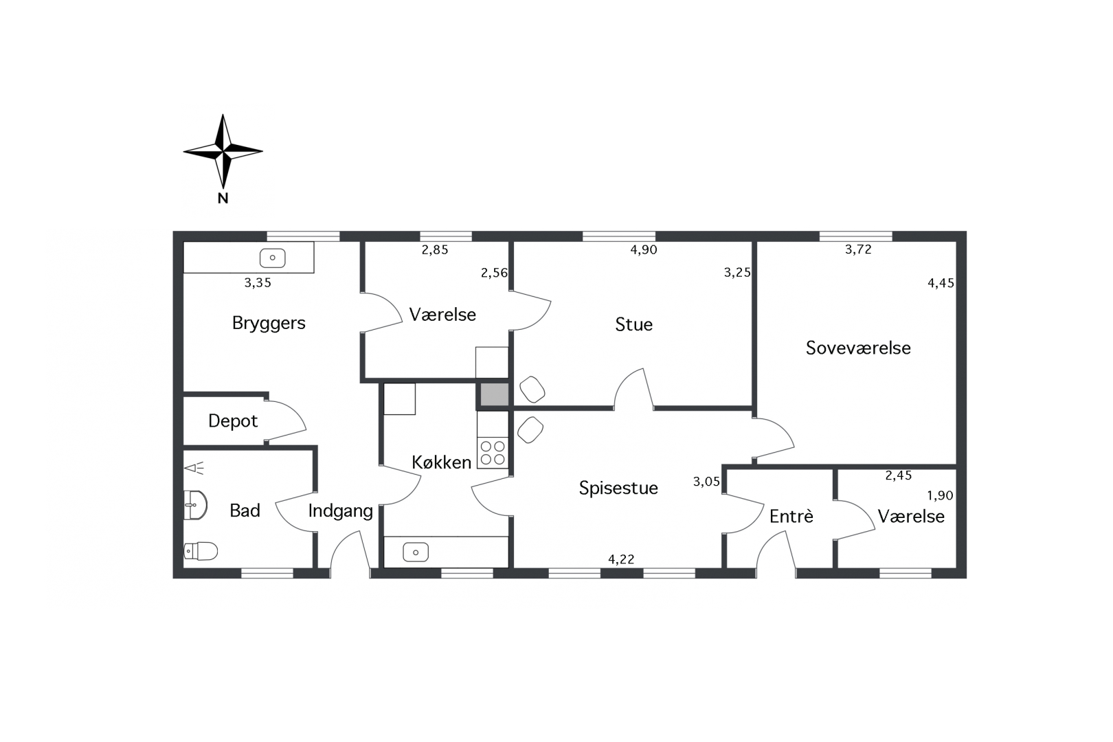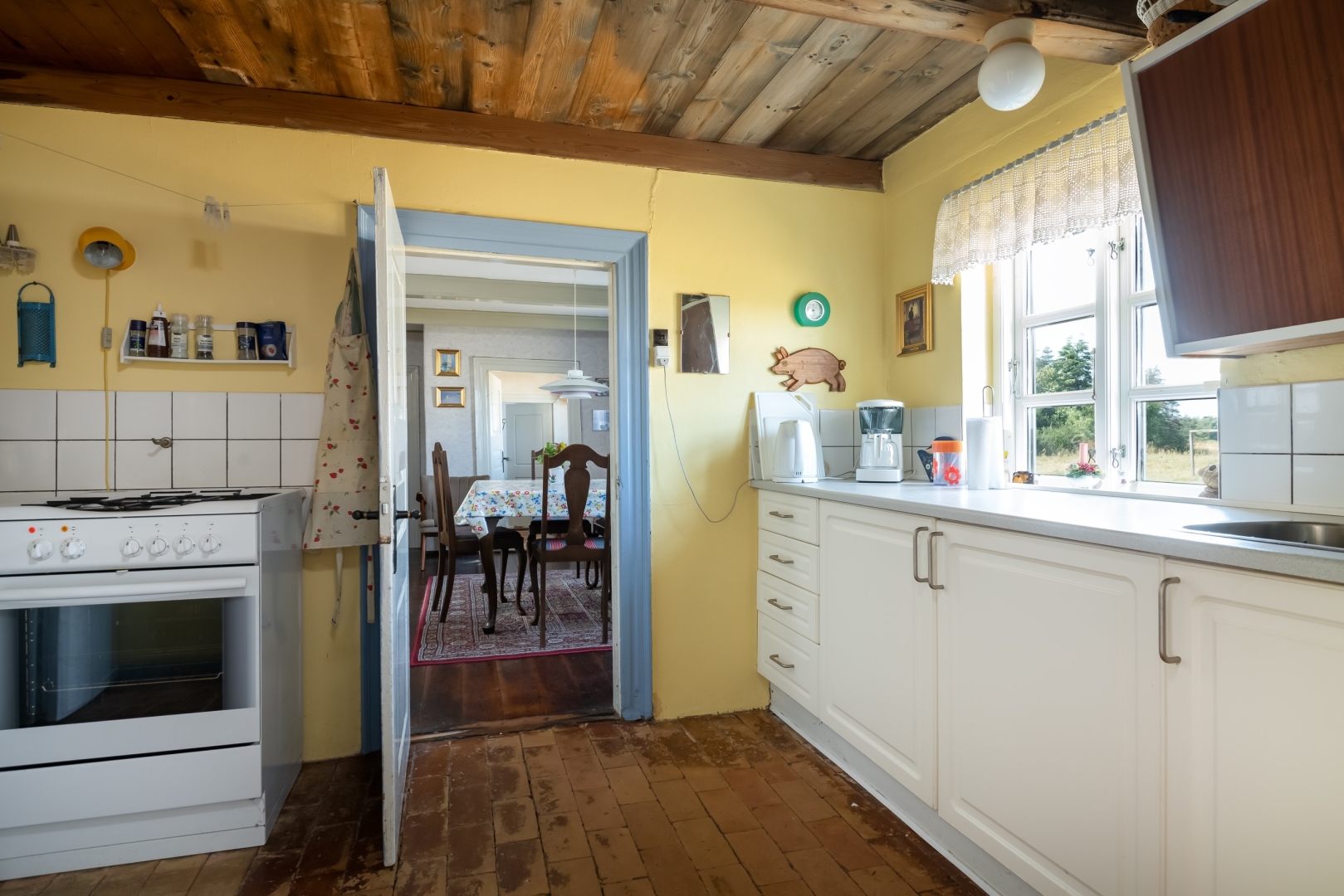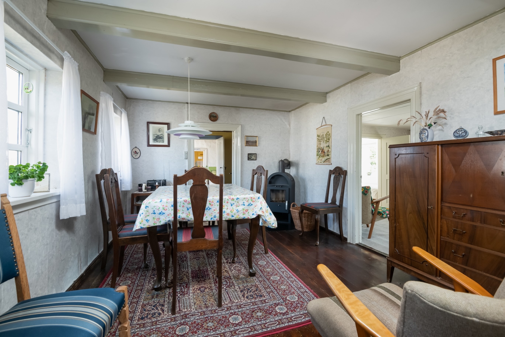 120 m² hyggelig og nostalgisk bolig opført i 1852 og flot vedligeholdt i den oprindelige stil. Boligen er med 2 indgange, køkken, spisestue med brændeovn, opholdsstue med brændeovn, soveværelse, 2 værelser, bryggers og badeværelse med bruser.