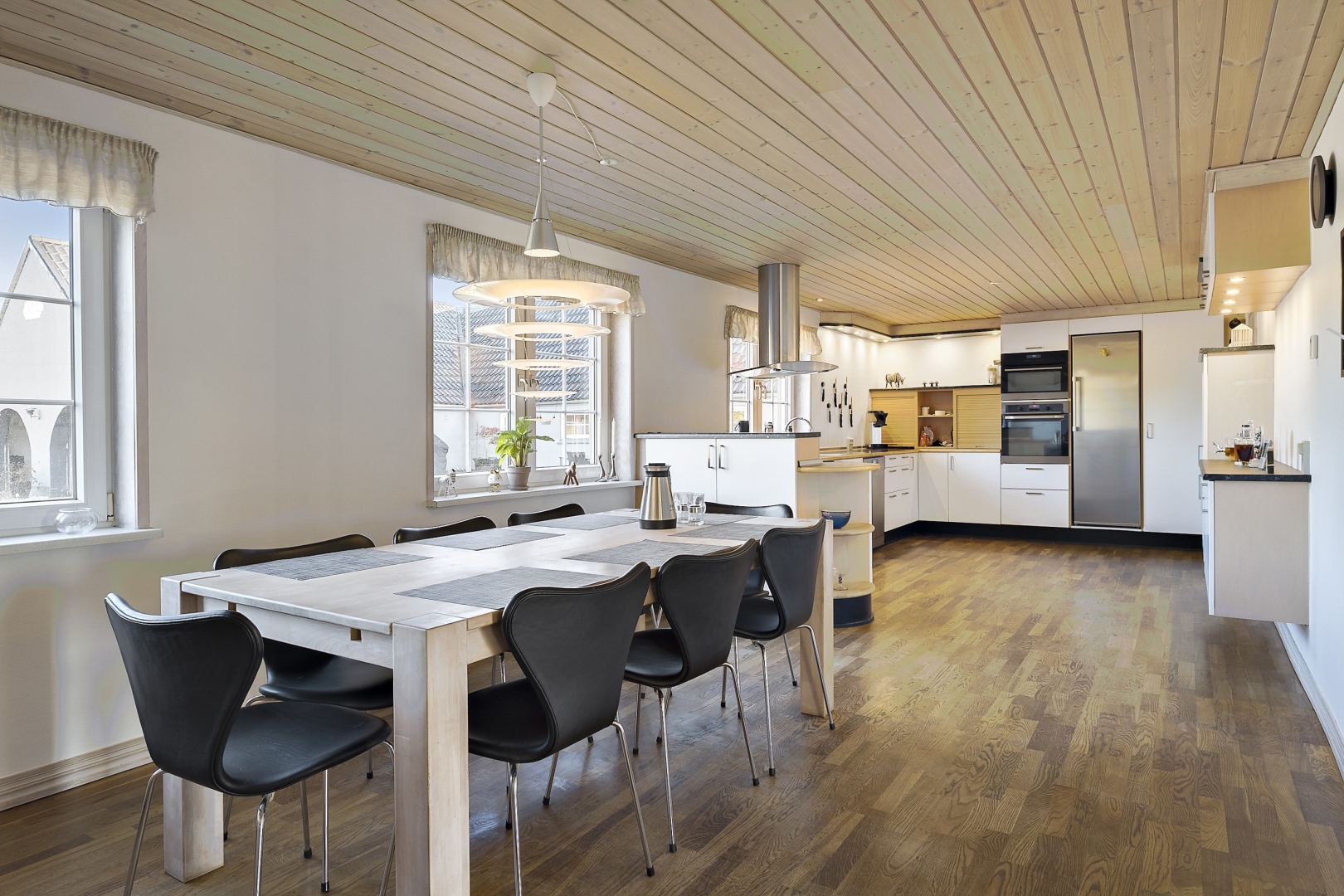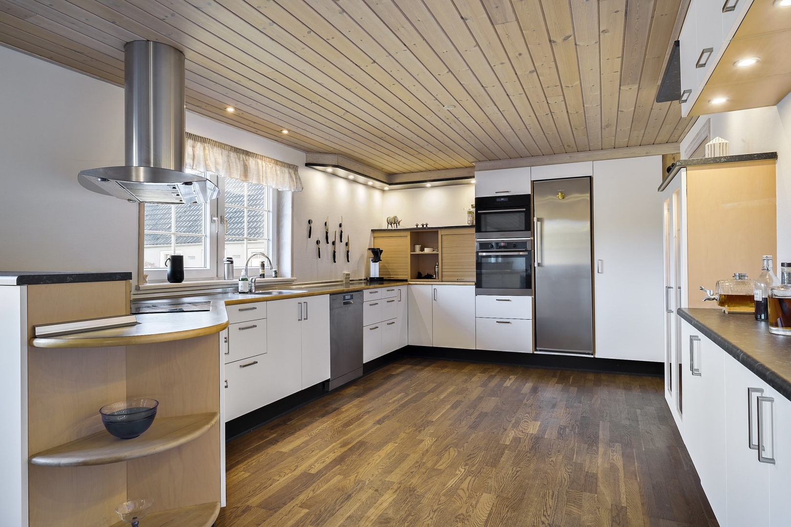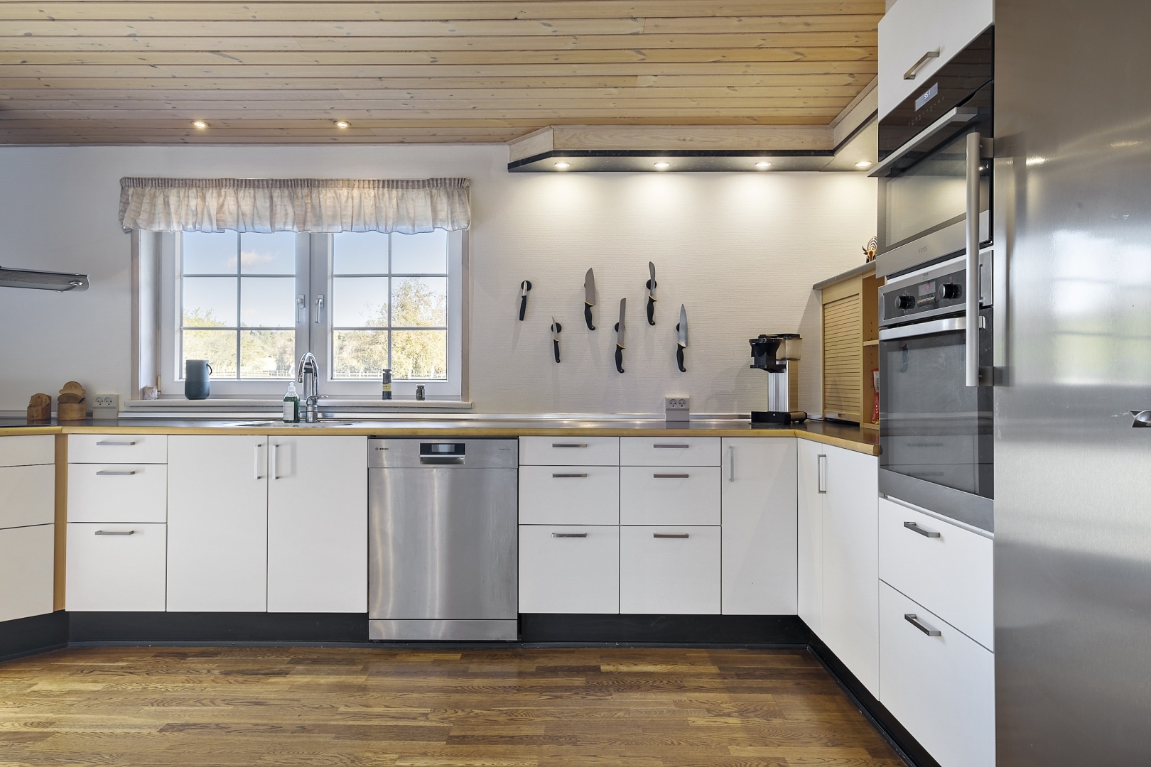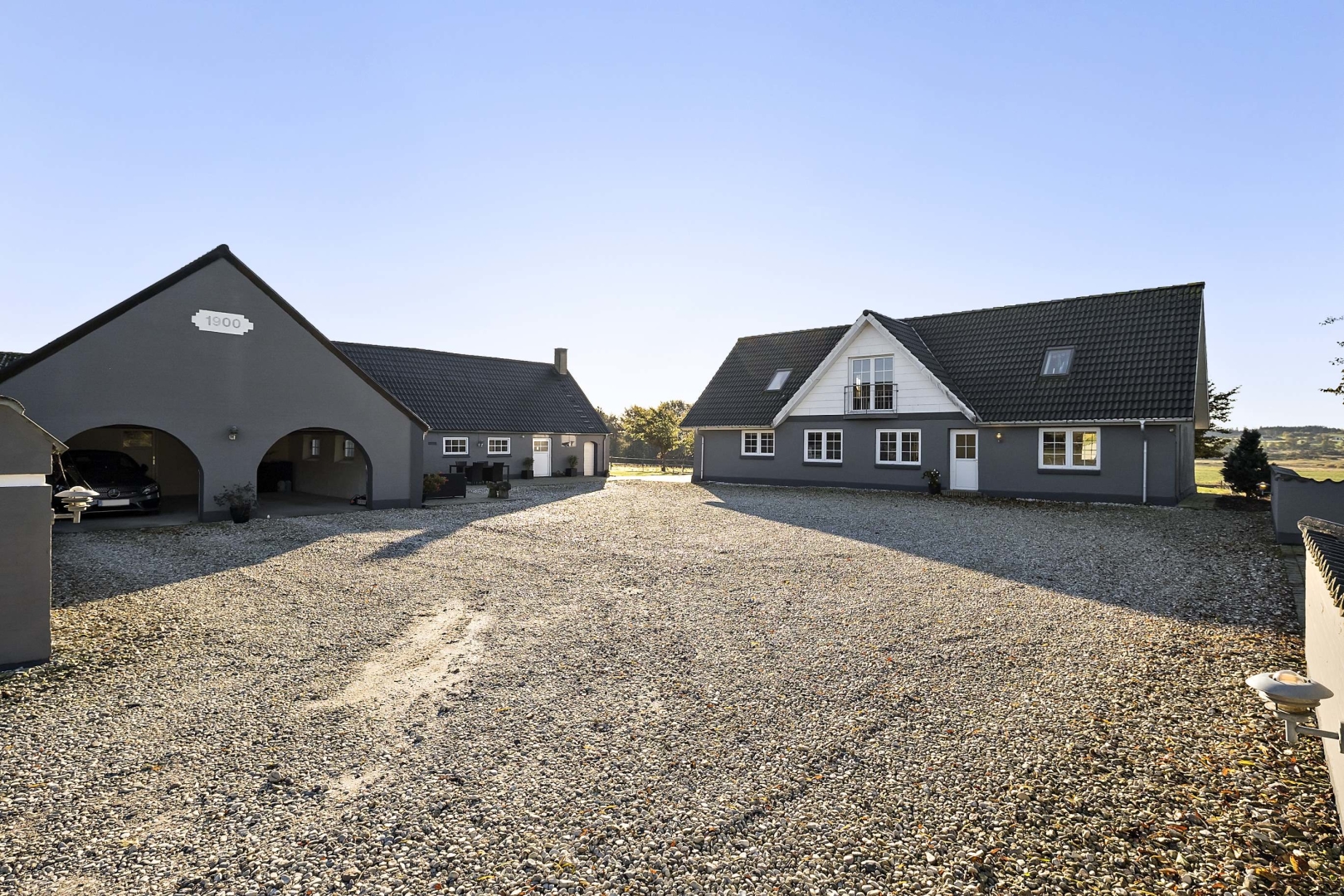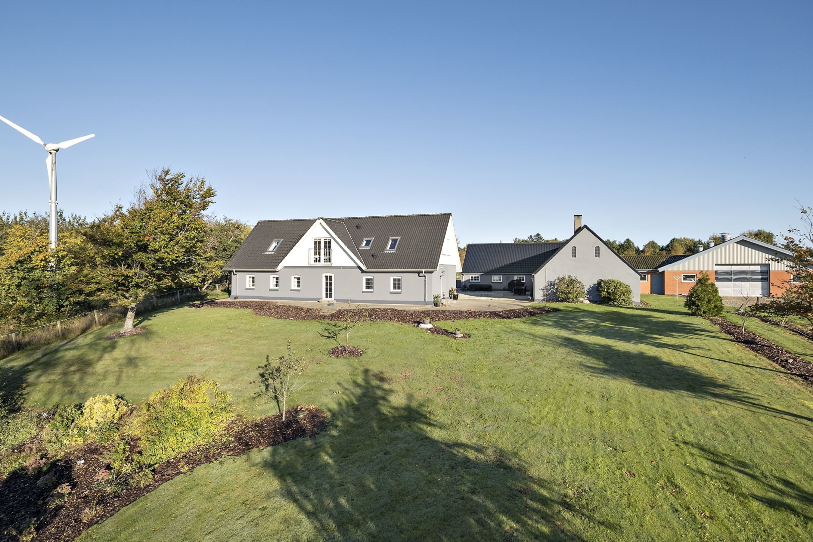 Den tidligere kvægejendom som er ombygget og moderniseret, består af et fritliggende stuehus med malede facader, termoruder i plastrammer og med vedligeholdelsesfri stern m.v. Stuehuset der er renoveret i 2002 og 2008 indeholder stort bryggers med bordarrangement med vask og skabsarrangement med plads til vaskemaskine og tørretumbler, stort køkkenalrum med god spiseplads, dobbelt dør til dejlig lys opholdsstue med udgang til sydvendt flisebelagt terrasse og fantastisk velholdt og velanlagt have, lækkert badeværelse med kar og bruseniche, kontor/værelse, entré med trappeopgang til overetage med stor lys repos med kvist og fransk altan, 4 rummelige gavlværelser, stort soveværelse med kvist og fransk altan hvorfra der er en storslået udsigt, dejligt badeværelse med bruseniche.