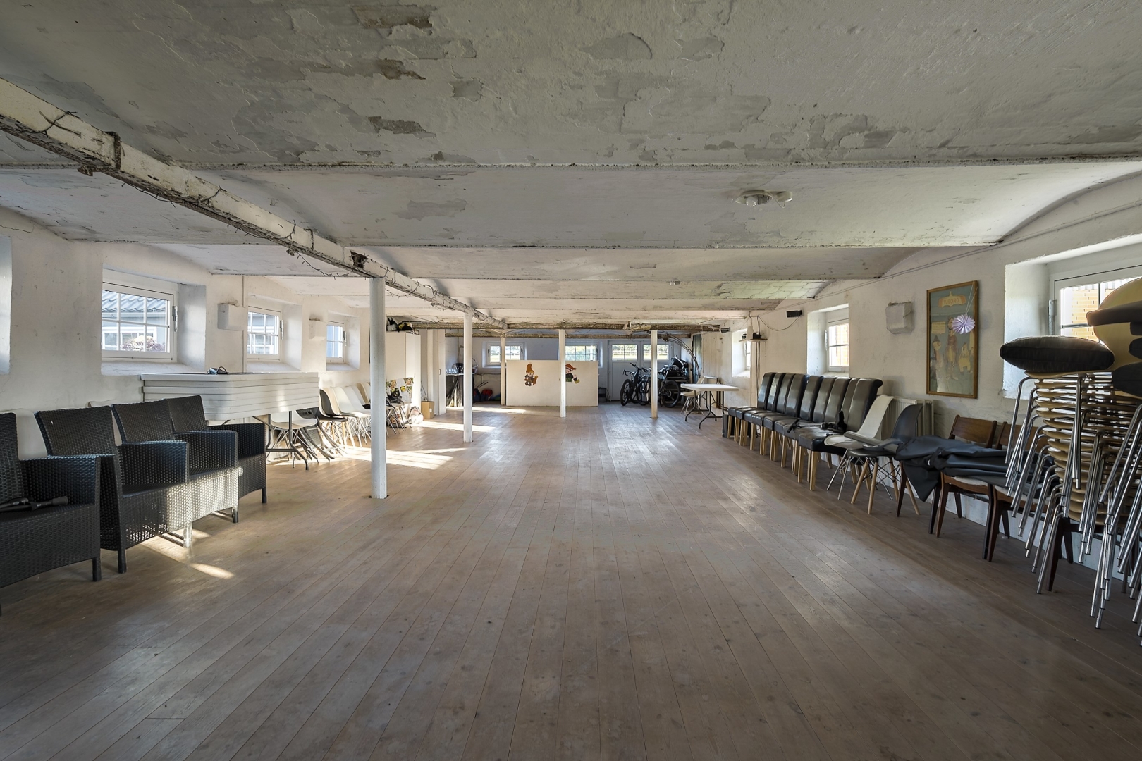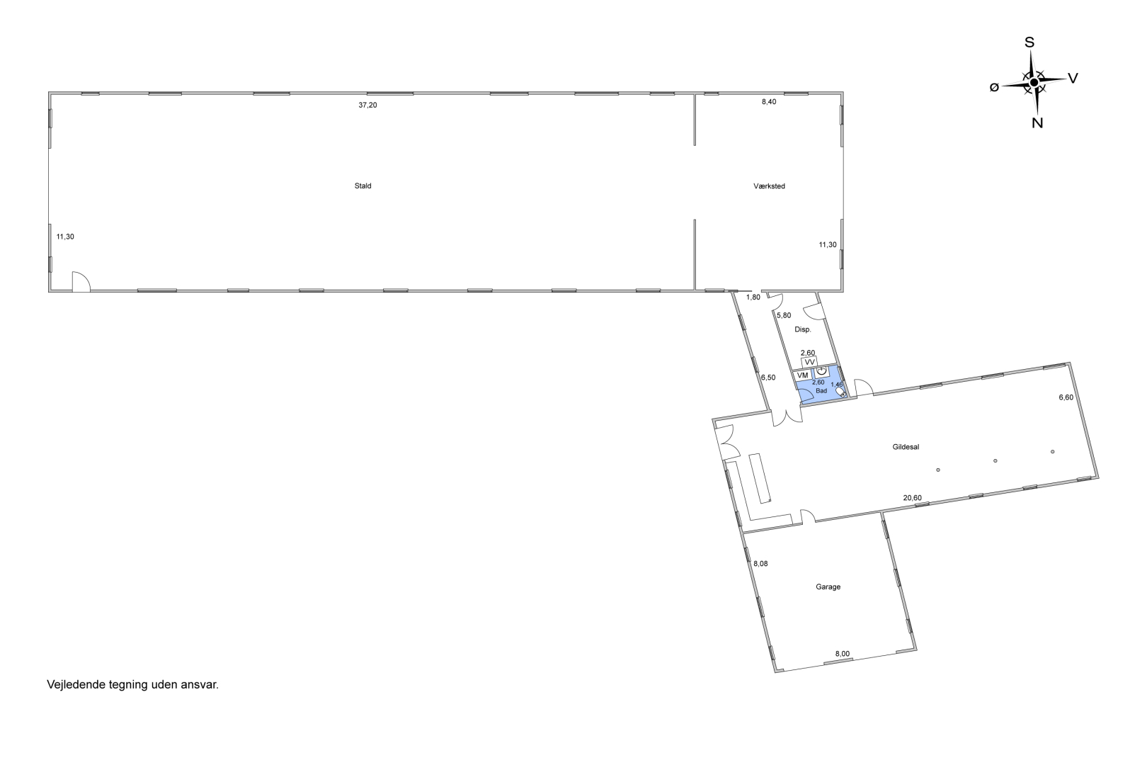 Øvrige bygninger består af vinkelbygning med pudset facade, bl.a. indrettet med sadelrum, mellemgang med indgang til toilet med vaskemaskine, rytterstue, fyrrum med pillefyr (årligt forbrug ca. 10 - 12 paller á 900 kg). Fra mellemgang indgang til stor gilde-/festsal med udgang til stor dobbelt garage med 2 porte. Fra mellemgangen er der også indgang til stor 562 m² rødstensbygning med større værksted. Fra værksted er der direkte indgang til hestestald med 8 bokse og løsdriftsstald. Boksene har en størrelse, så de er godkendt som folingsbokse. Der er store aluporte i begge gavle.