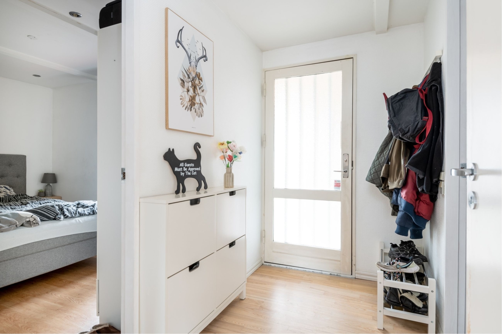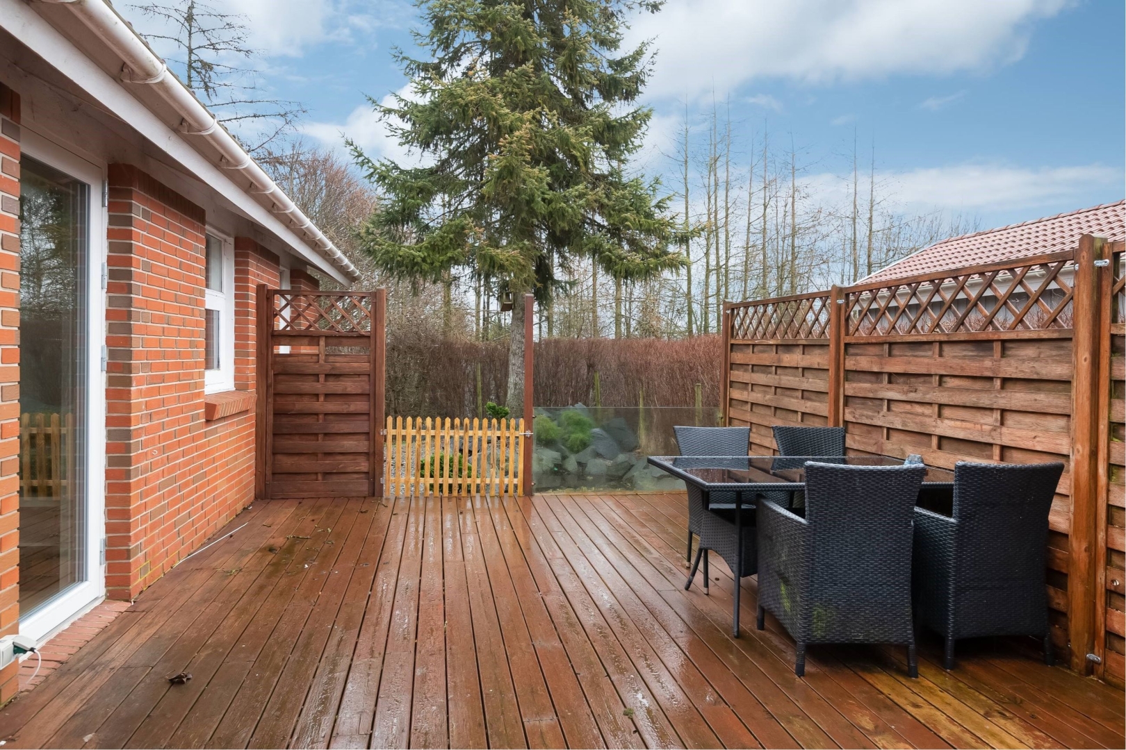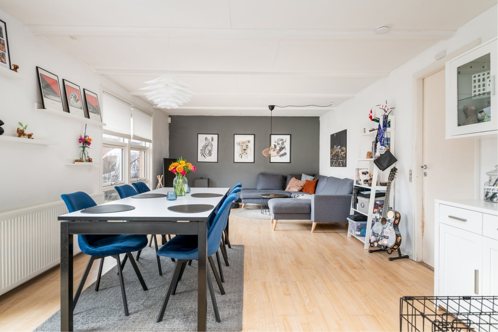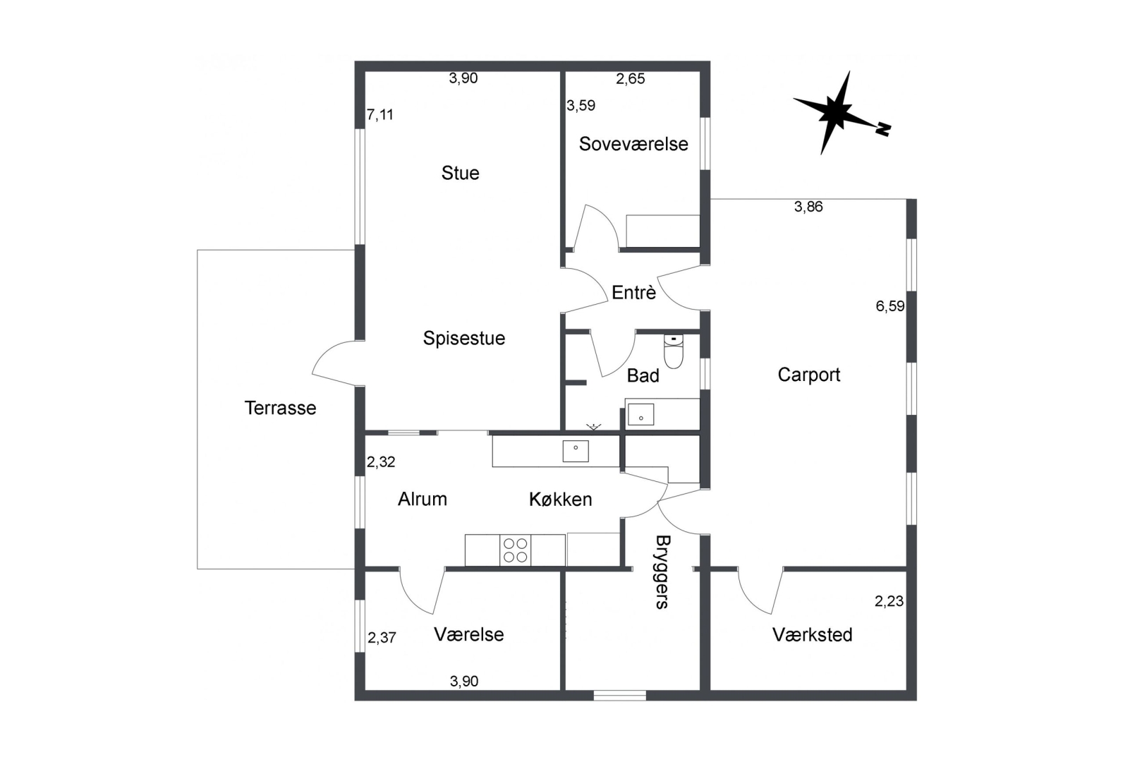 Boligen er indrettet med entré, stort bryggers hvor der er plads til vaskemaskine, tørretumbler og andre ting, lyst køkken/alrum med god spiseplads, skøn spise- og opholdsstue med stort vinduesparti med godt lysindfald, udgang til skøn lukket syd/vestvendt terrasse, soveværelse, værelse og badeværelse med bruseniche og bordarrangement.