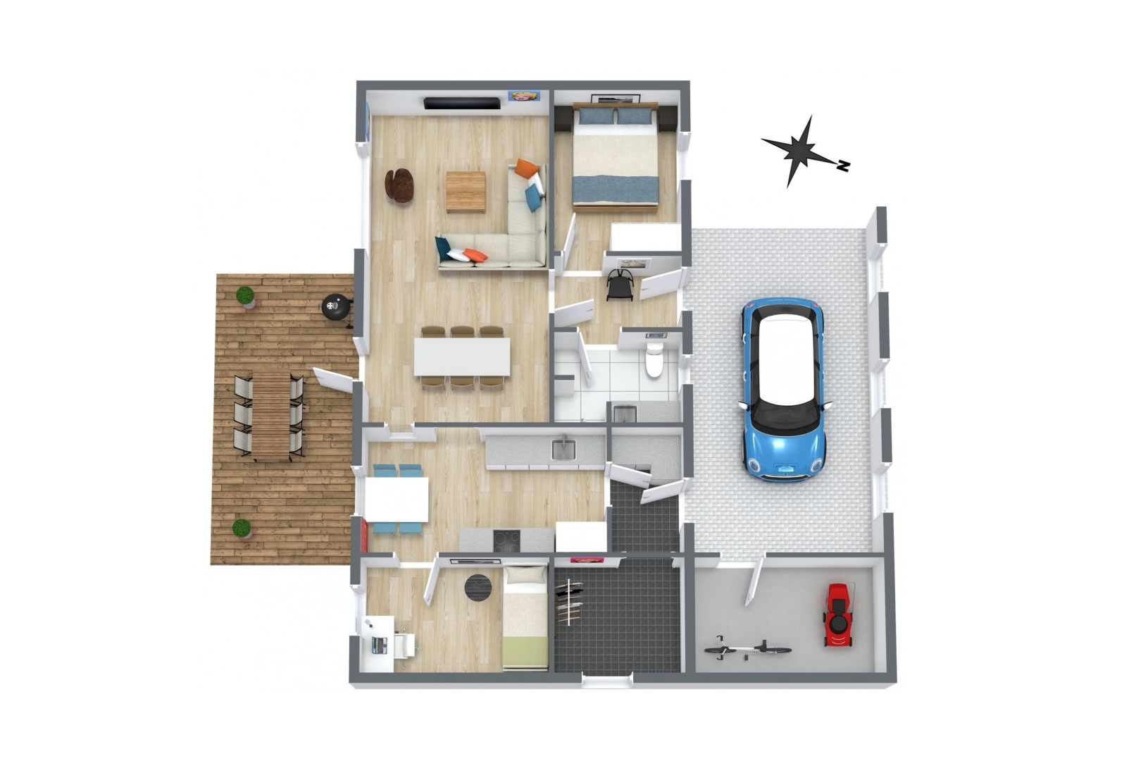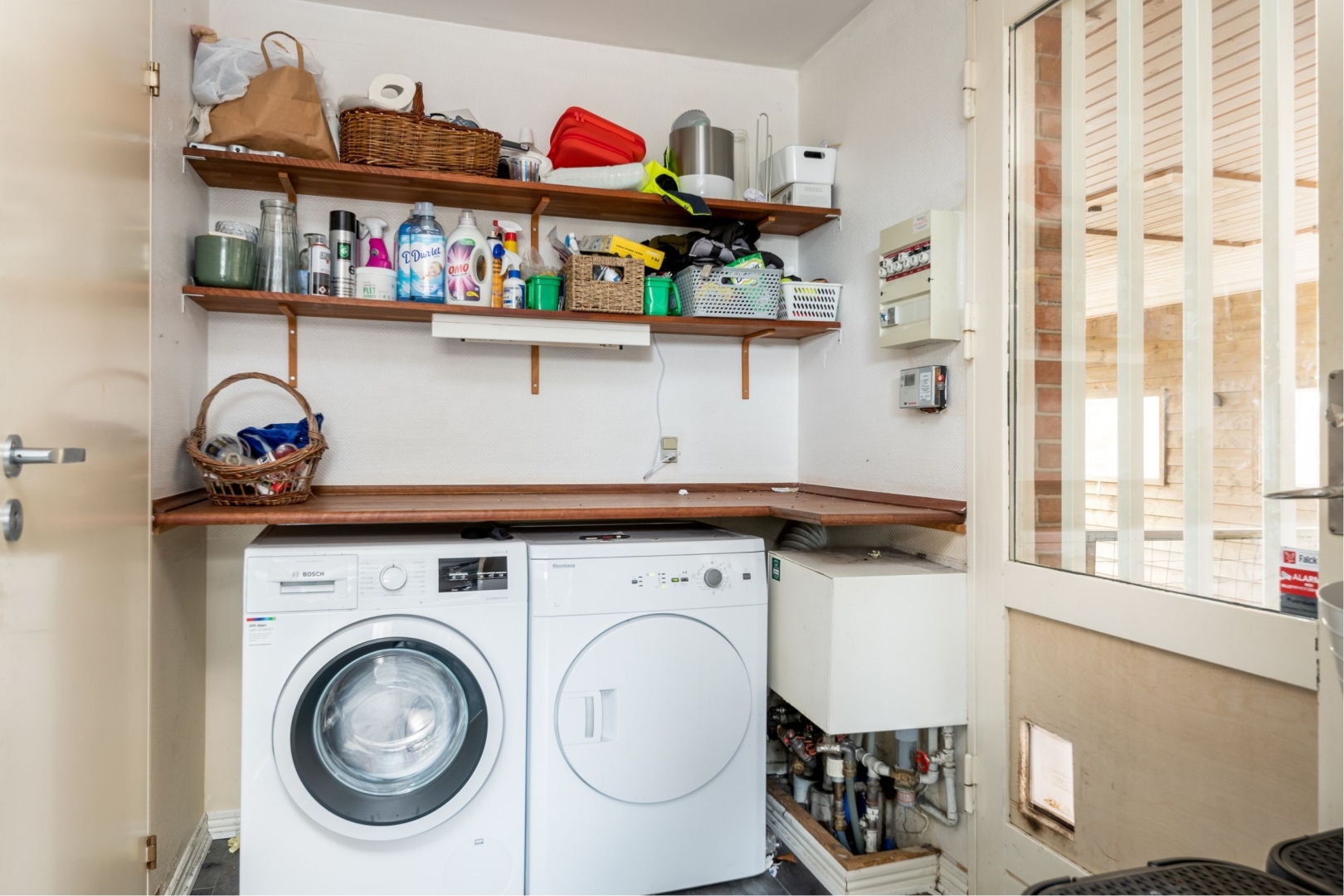 33 m² nyere medbygget carport med gitterspær og god loftsplads til opbevaring. I forbindelse med carporten er der et godt værksted/hobbyrum anvendelig til flere formål.