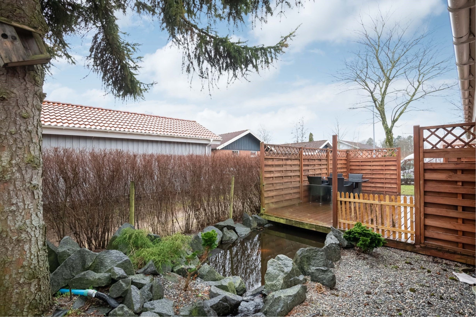 Villaen har en stor pæn flisebelagt indkørsel og en nem og overskuelig have.