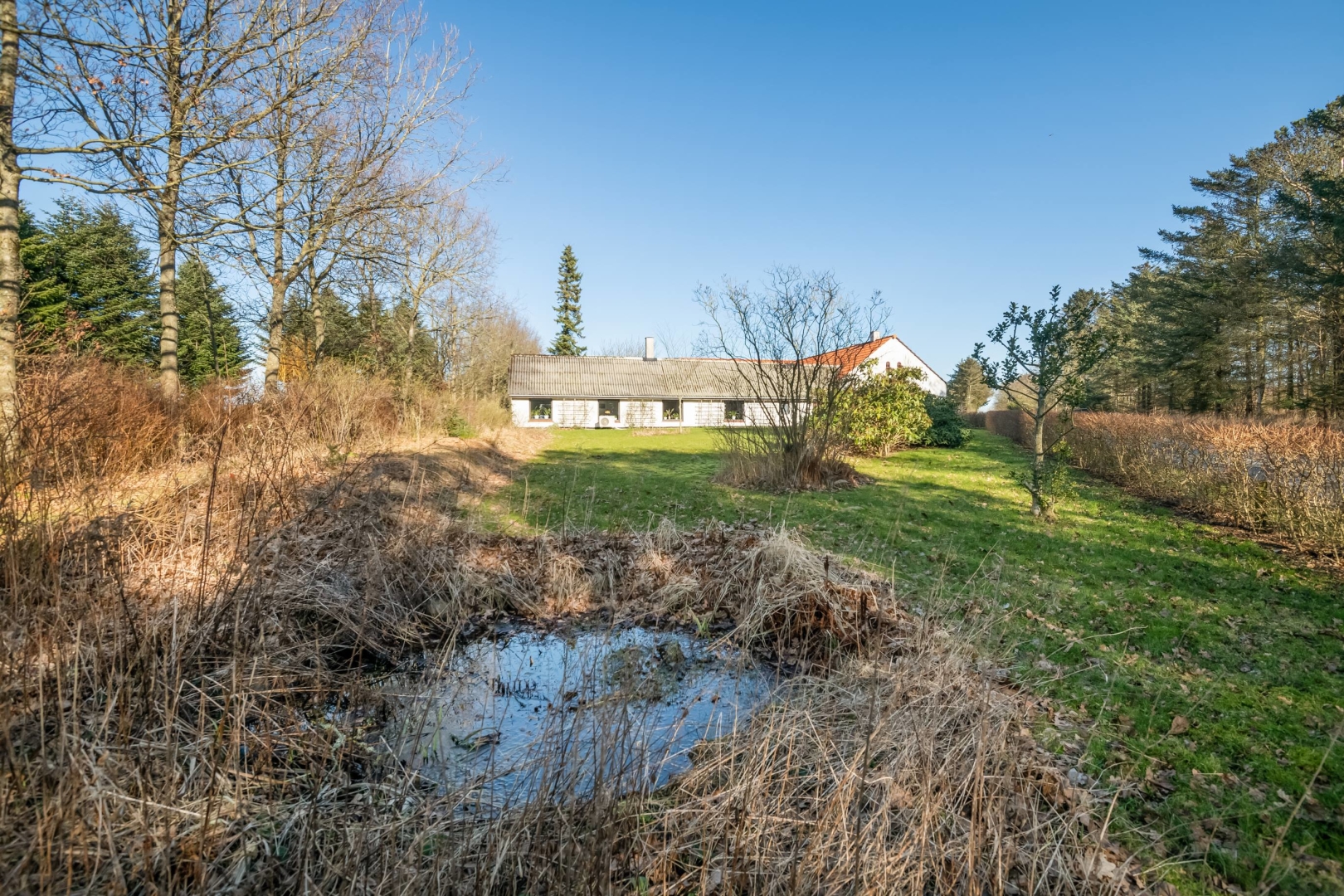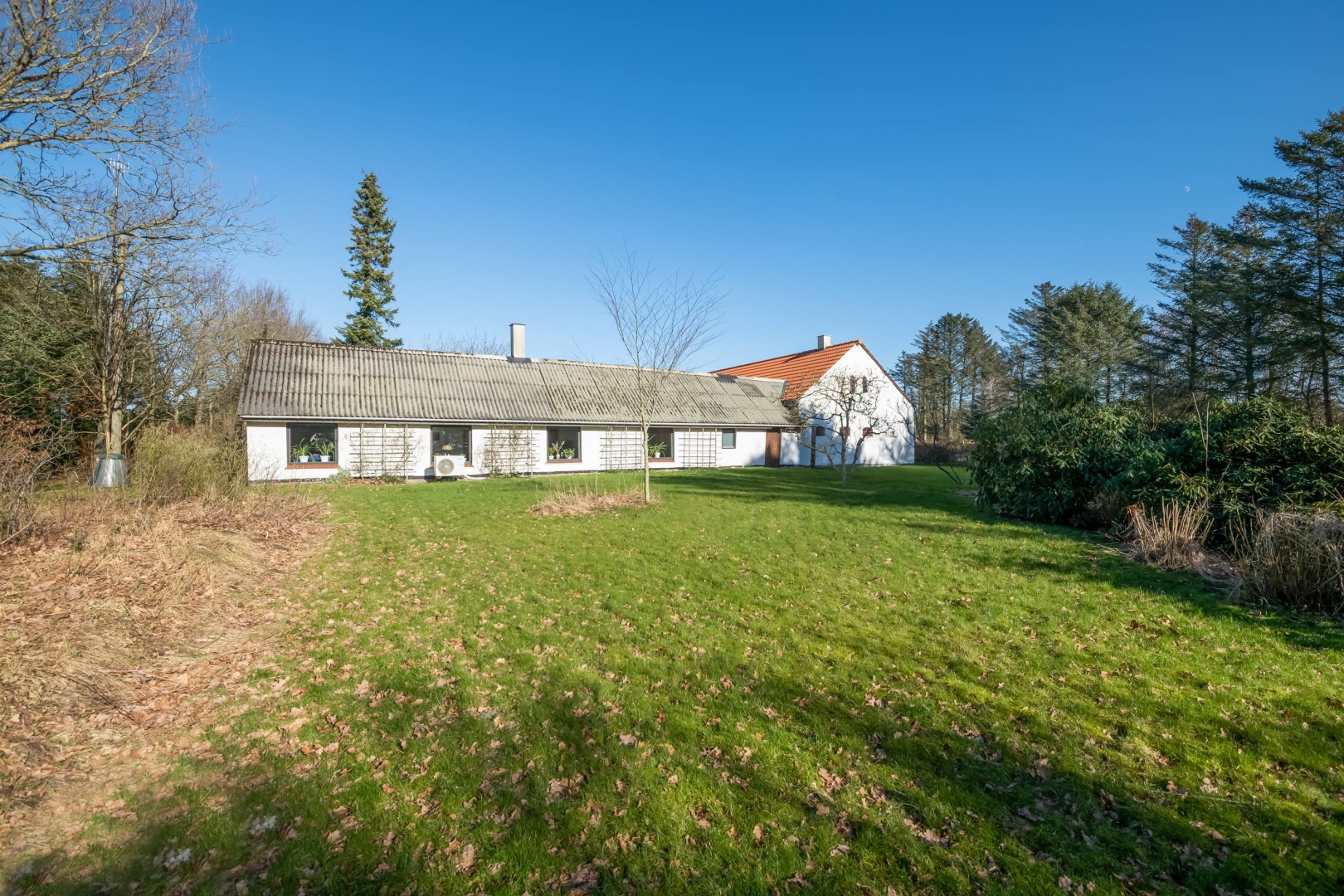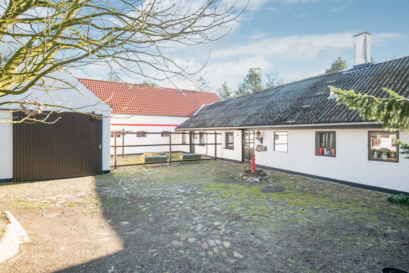 Ejendommen er velholdt inde som ude, med hyggelig gårdsplads med gammel vandpumpe, have med græsplæne og beplantning, der støder op til ejendommens skovareal med forskelligt løv- og granbeplantning.