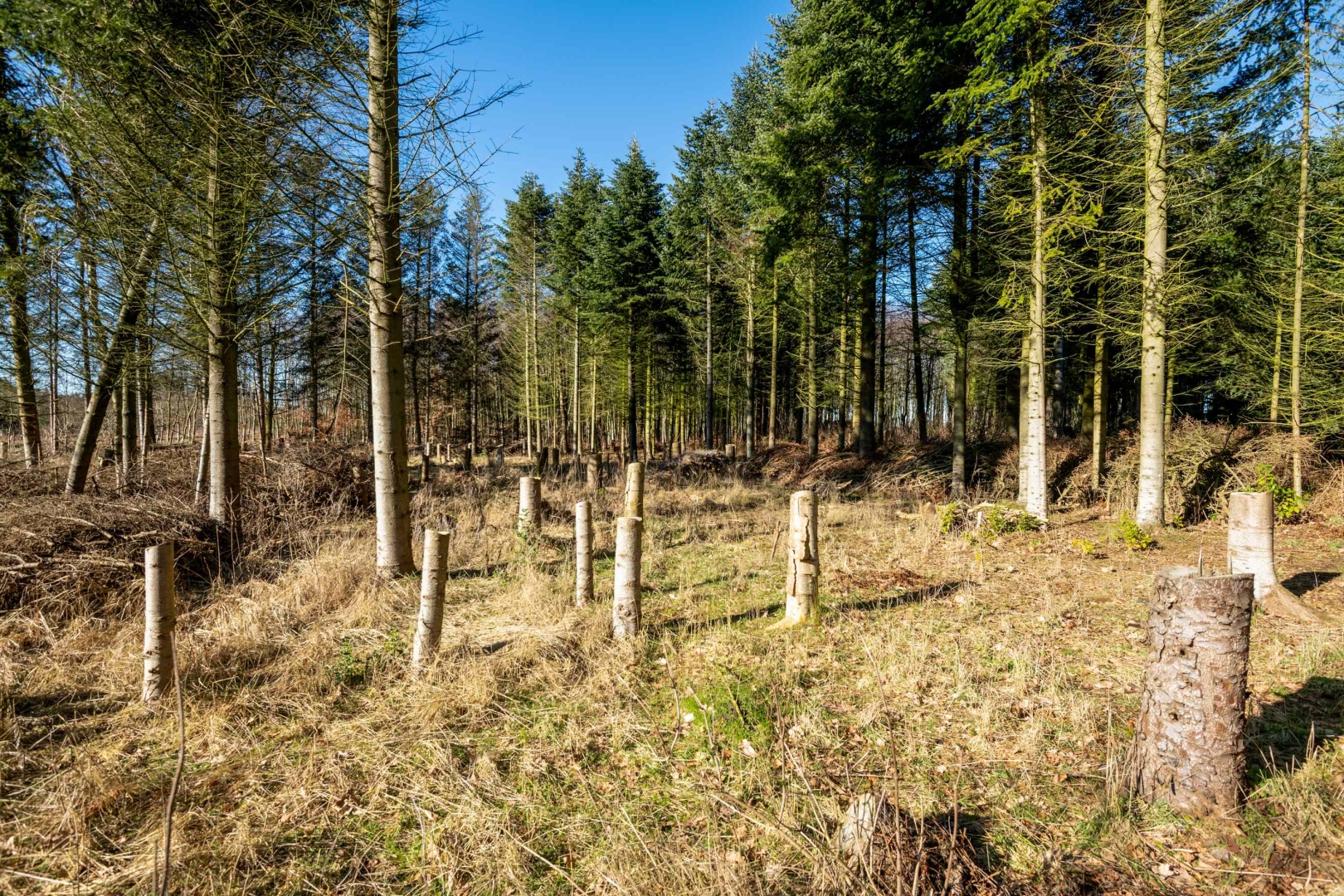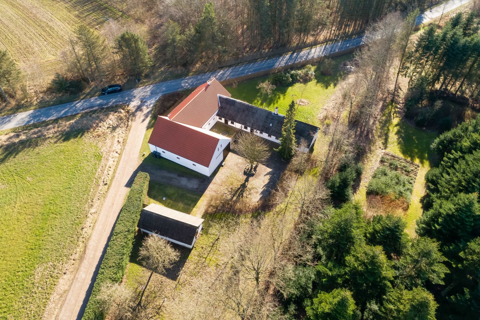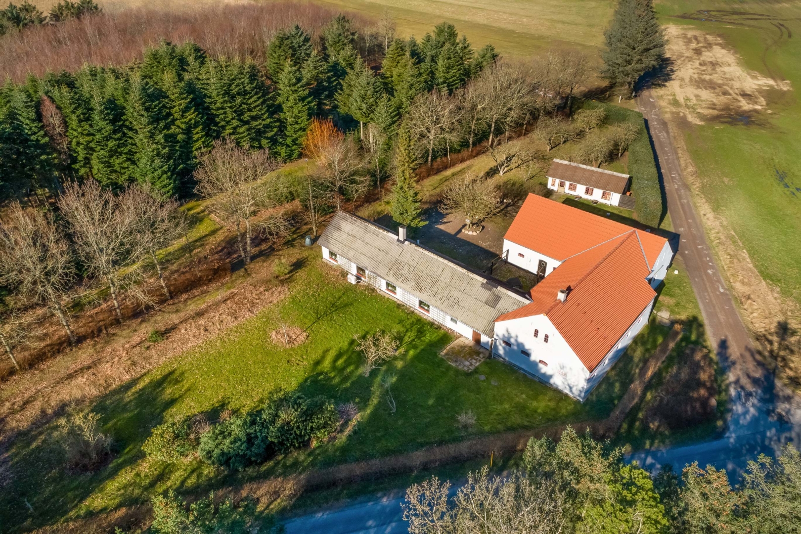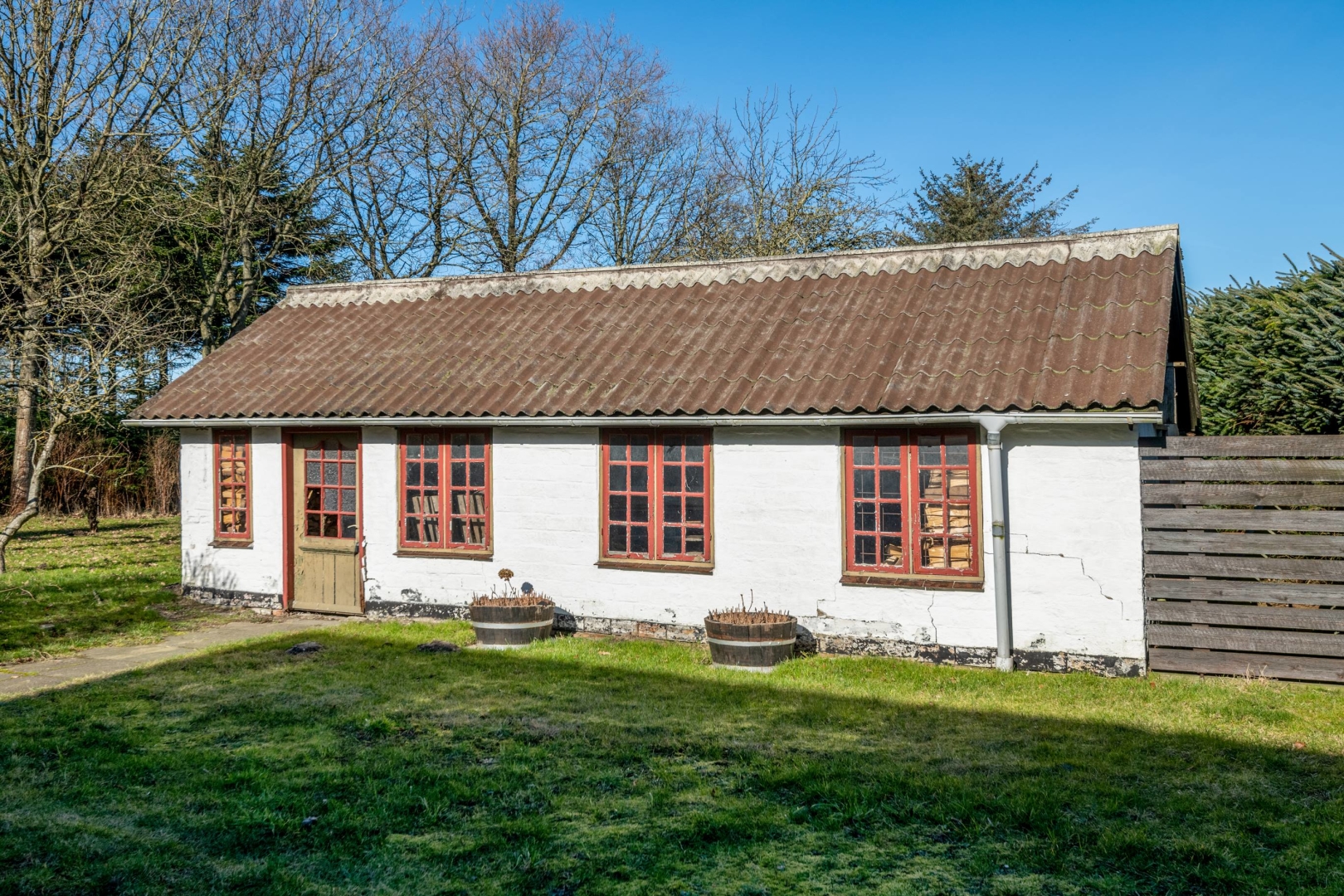 Ejendommen er velholdt inde som ude, med hyggelig gårdsplads med gammel vandpumpe, have med græsplæne og beplantning, der støder op til ejendommens skovareal med forskelligt løv- og granbeplantning.