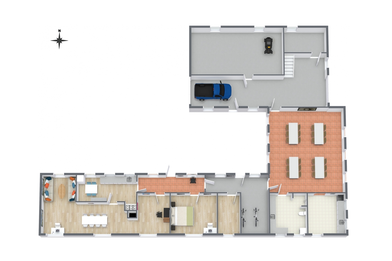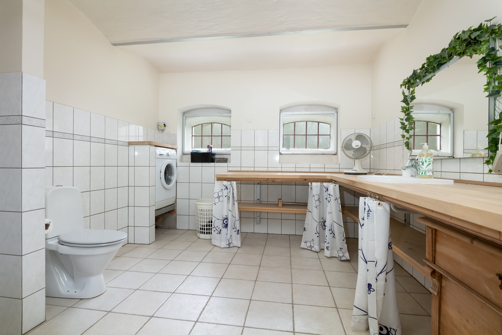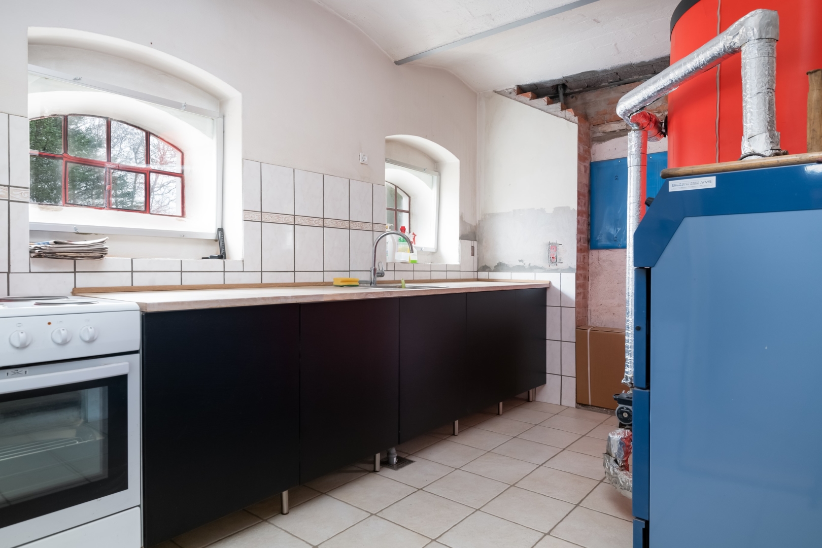 Boligen er indrettet med entré, lyst køkken med både gammel brændekomfur og gaskomfur, lys spise- og opholdsstue, kontor/værelse, stort soveværelse, 2 gode disponible rum, stort nyere badeværelse med bruseniche, stort bordarrangement og plads til vaskemaskine, stort fyrrum/grovkøkken med bordarrangement, stort aktivitetsrum/gildesal med stengulv.