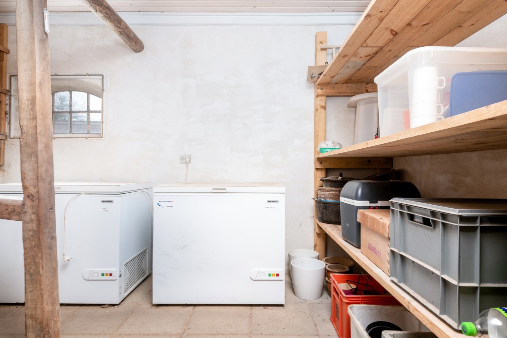 Medbygget lade, garage, værksted, depotrum og stor rummelig loftetage. Tidligere udhuse er blevet renoveret med bl.a. nyt tag, nye gulve med varme m.m. Alt i alt en indretning med mange muligheder.