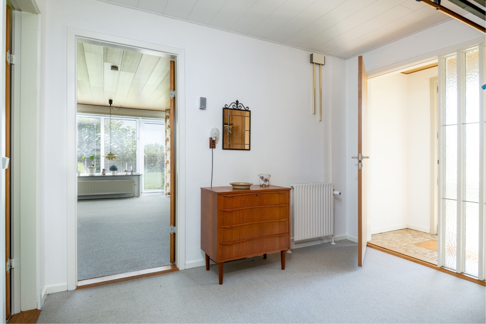 Villaen er velholdt og indrettet med vindfang, entré, lyst køkken med mindre spiseplads, spise- og opholdsstue med udgang til sydvendt terrasse, soveværelse, 2 værelser, pænt badeværelse med gulvvarme, badekar og god bruseniche, bryggers med bordarrangement og plads til vaskemaskine.