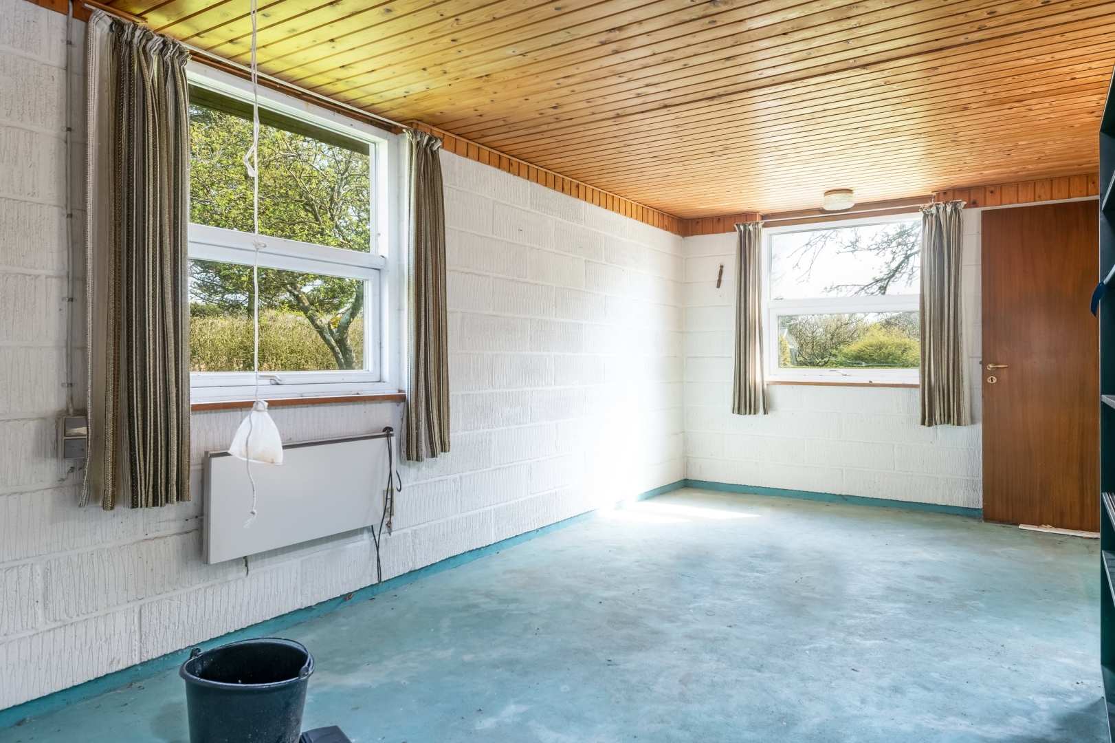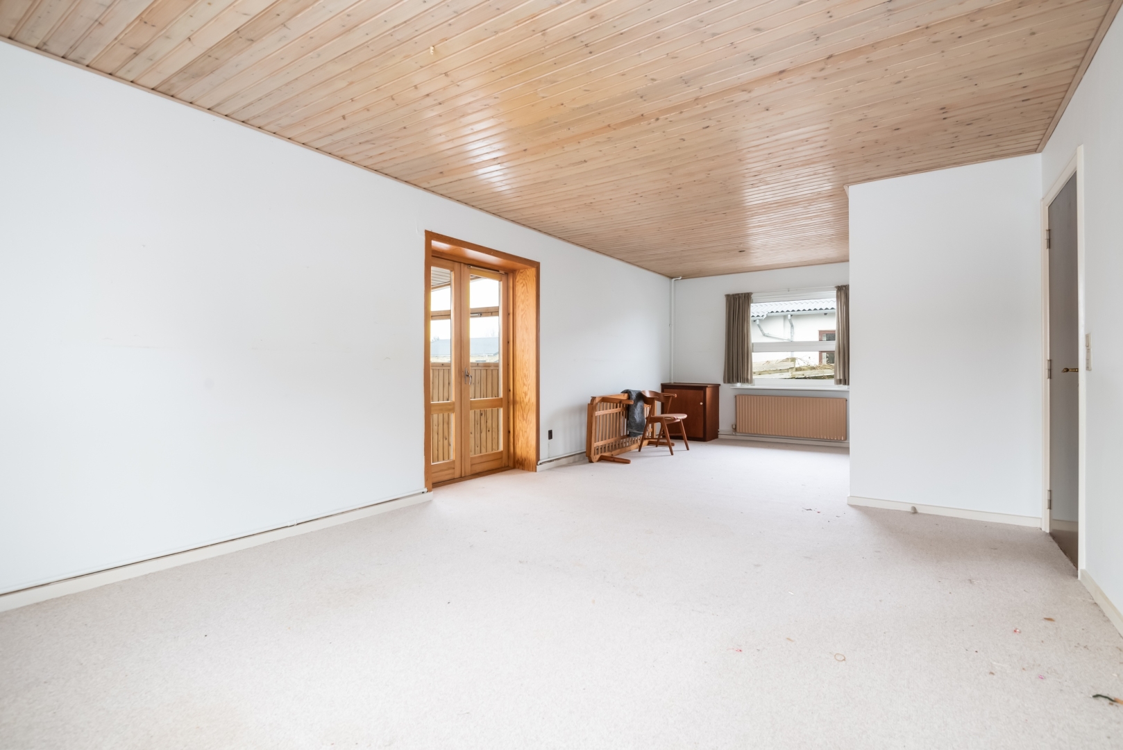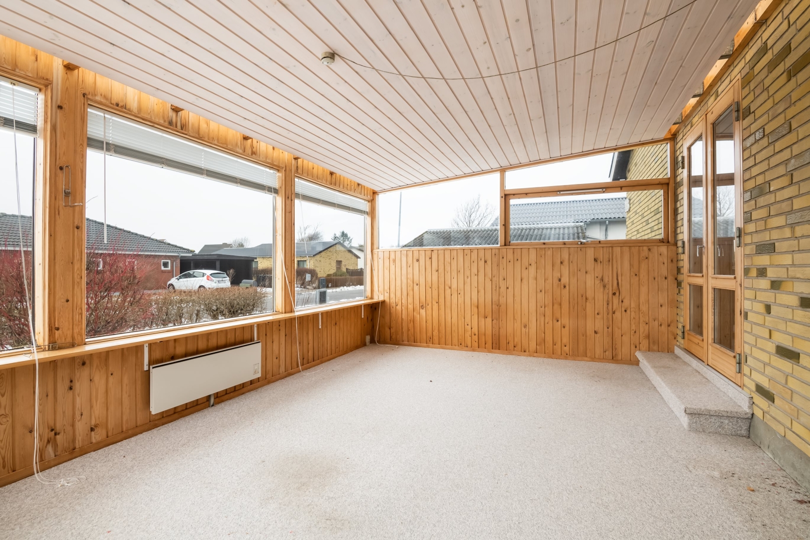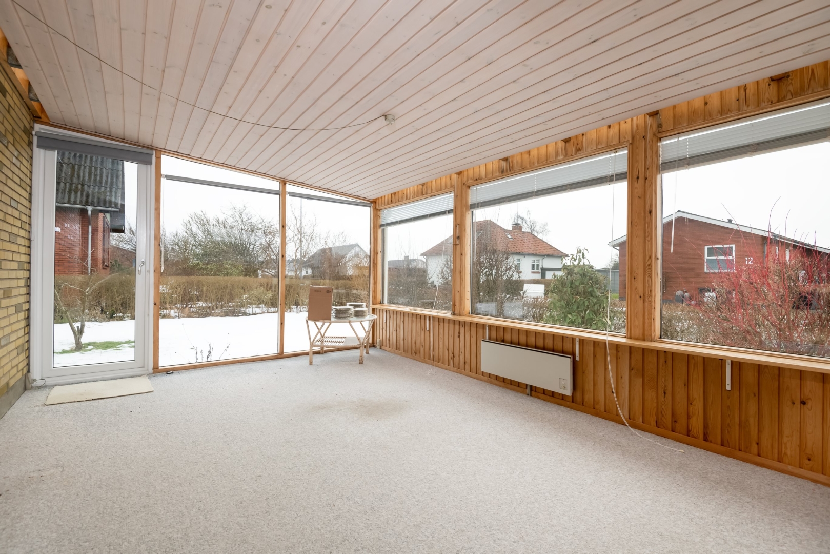 Boligen som er veldisponeret er med entré med adgang til bryggers med bordarrangement, køkken med spiseplads, spise- og opholdsstue med udgang gennem glas dobbeltdør til skøn 19 m² stor udestue, badeværelse med bruseniche, soveværelse med gode faste skabe og værelse.