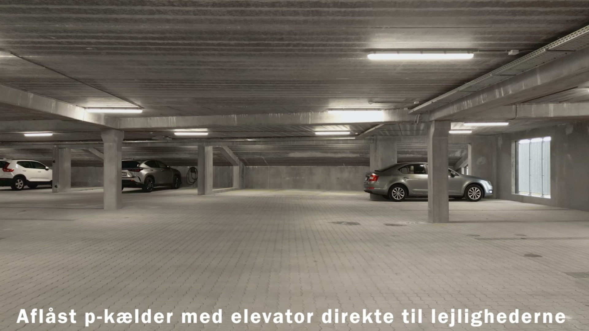 Under det sydlige tårn er der en god, rummelig parkeringskælder hvortil adgangen sker fra niveauplan. Samtidig er der masser af gæsteparkering på udearealerne omkring bygningerne.
