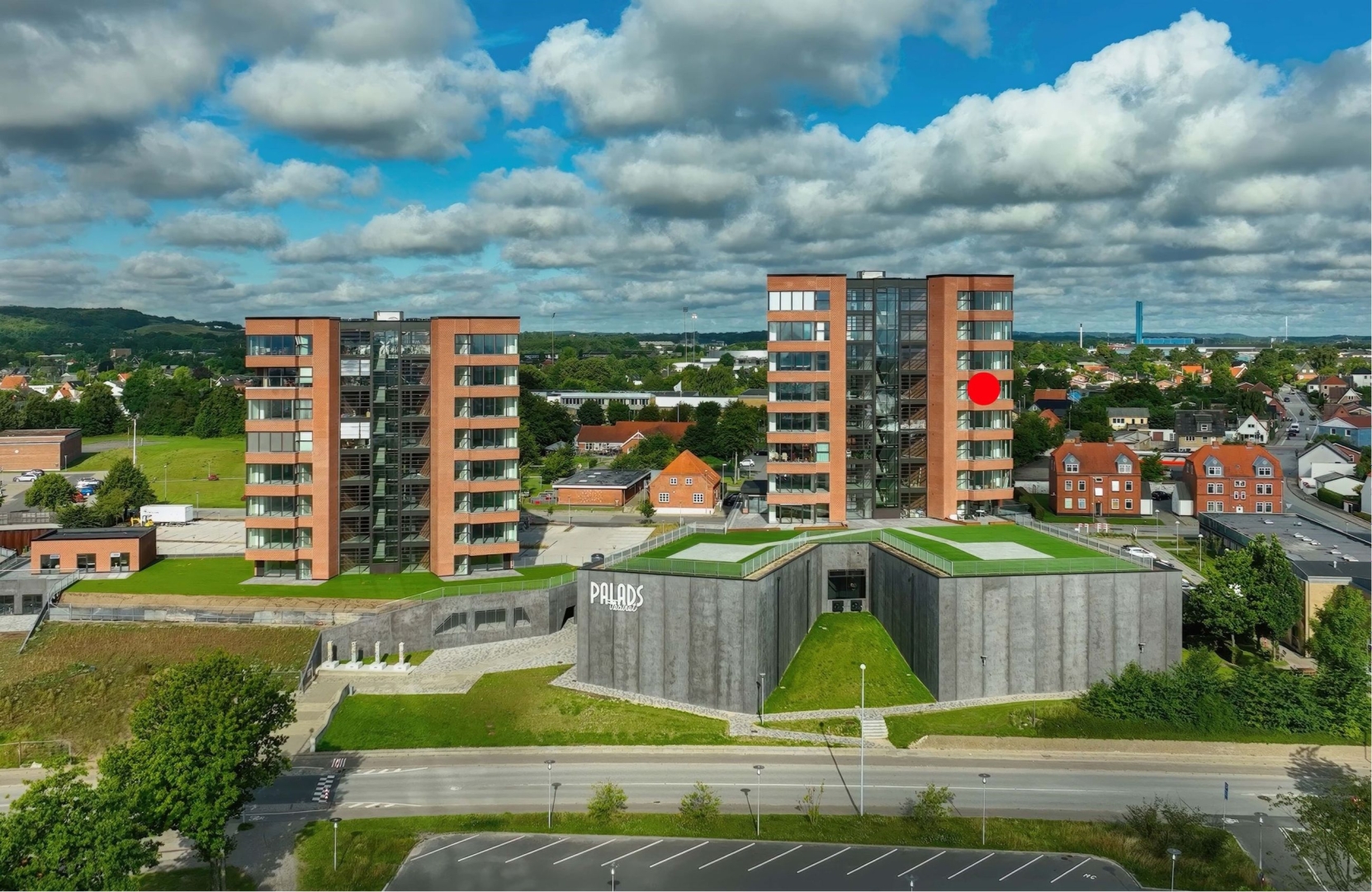 Under det sydlige tårn er der en god, rummelig parkeringskælder hvortil adgangen sker fra niveauplan. Samtidig er der masser af gæsteparkering på udearealerne omkring bygningerne.