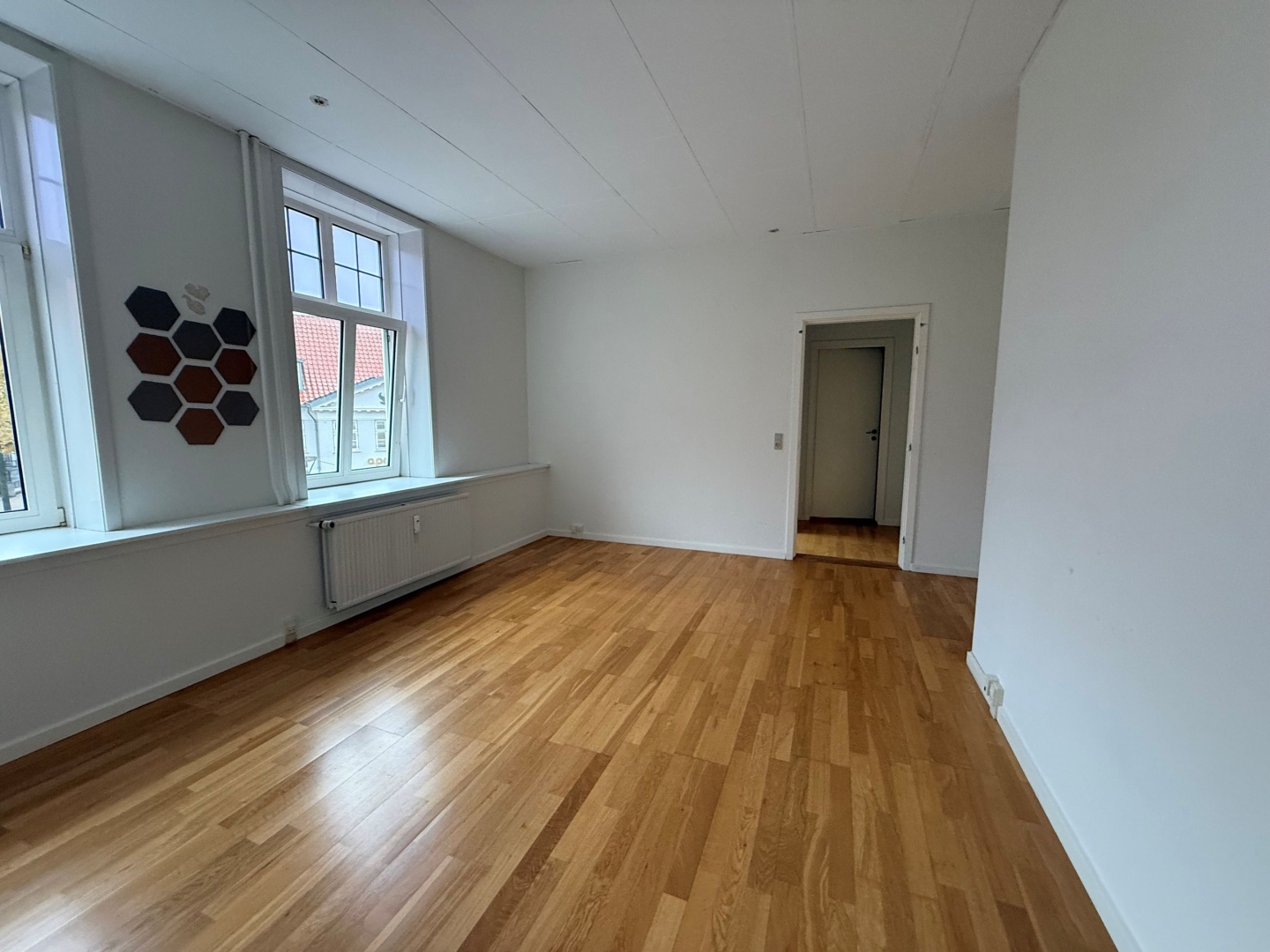 Beliggende på 1.sal i en af Frederikshavn´s flotteste ejendomme, finder vi denne fine lejlighed på 63 m2.