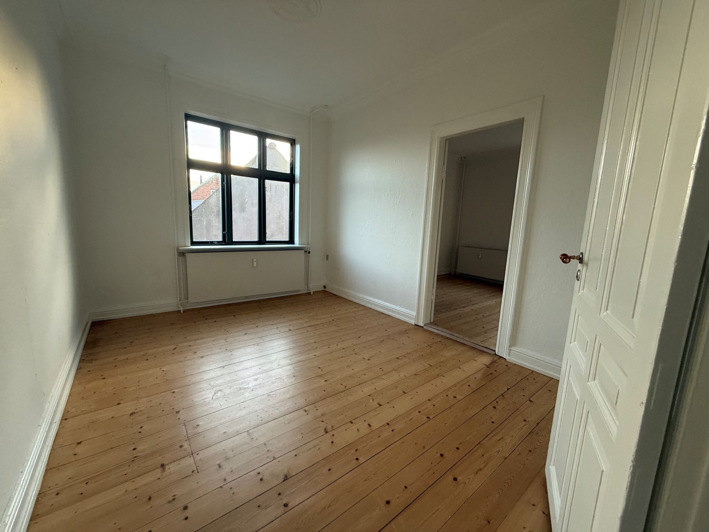 Lejligheden er indrettet med entré, lys stue/spisestue med åbning til lys opholdsstue, stort værelse med direkte adgang til godt soveværelse med skabe, fint køkken med komfur, emhætte, køleskab med mindre fryser samt opvaskemaskine, der er endvidere plads til egen vaskemaskine, lille gang med udgang til bagtrappe samt badeværelse.
