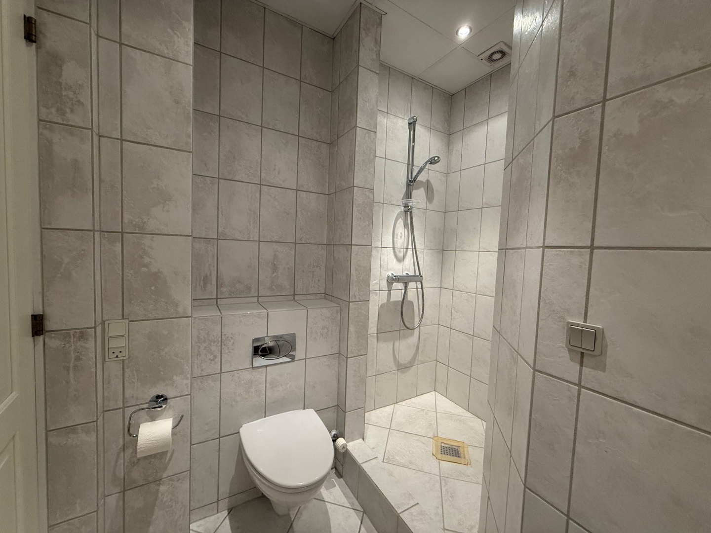 Lejligheden er indrettet med stor rummelig entre/gang med god garderobeplads, pænt lyst badeværelse med bruseniche, stort soveværelse med hel skabsvæg og direkte adgang til stort lyst badeværelse med 2 håndvaske i bordarrangement, stor bruseniche og gulvvarme, gangareal med skabsvæg med skyselåger, værelse med udgang til fælles vestvendt terrasse samt udgang til bagtrappe, stort flot køkken med god skabsplads, indbygningsovn, kogeplader, emhætte, køleskab, opvaskemaskine og vaskemaskine, værelse/kontor med hel skabsvæg med skydelåger, charmerende stor vinkel stue med skønt lysindfald og udsigt ned over gågaden.