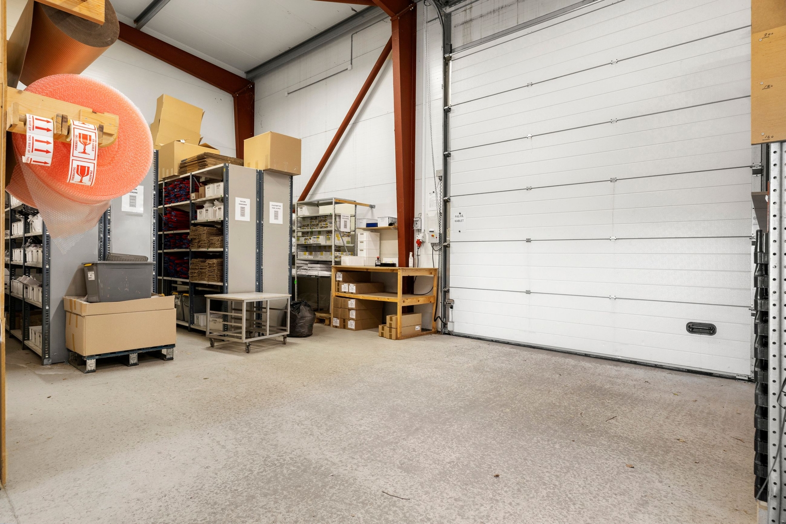 Ejendommen er opført i beton og farvede stål sandwich elementer, og der er kraftudtag installeret for at imødekomme høje strømforbrug. Med et støbt gulv og god loftshøjde giver ejendommen et fleksibelt og funktionelt arbejdsmiljø.
